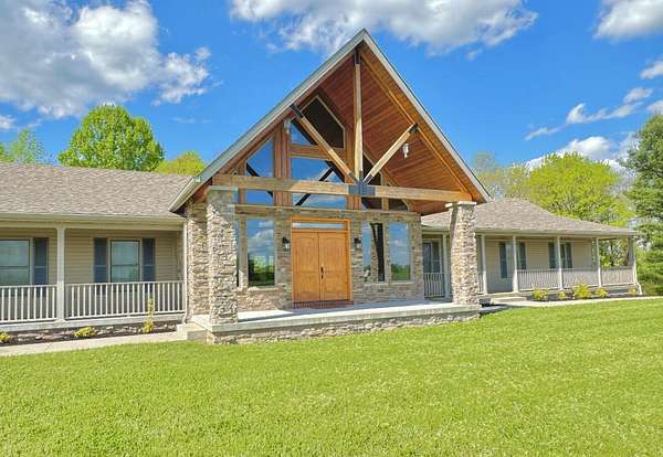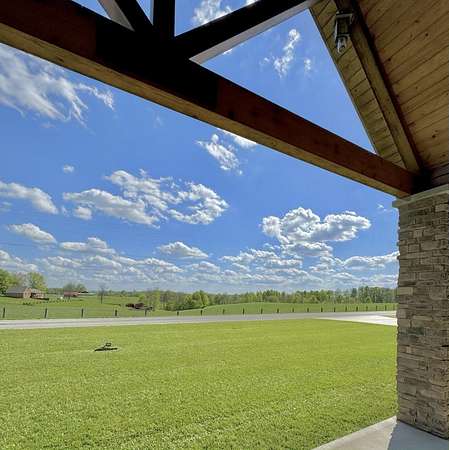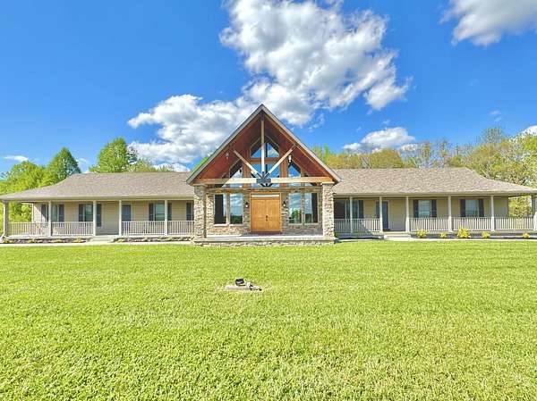 This beautiful and spacious, custom built A-frame ranch sets on a large lot in rural south central KY. The home features a wealth of natural elements, such as live edge redwood countertops, vaulted western cedar ceilings, a central stone fireplace, as well as, birch hardwood flooring. The massive kitchen island contains two gas ranges, a potfiller, a copper bar sink, and breakfast bar for 4+ people. Handicap accessibility and floor plan (with two ensuite baths, multiple main level bedrooms, and additional bonus rooms downstairs), offer the potential for various uses, whether residential, investment/business, or commercial. Surrounded by rolling pastures and mature trees, the views are picturesque year round. Located only 15 minutes from town and less than 1 hour to all area lakes/marinas, boat ramps, campgrounds, and state parks of Lake Cumberland and Green River. An additional two acre lot to the west could be negotiated. This property is priced to sell! Call today to schedule your private showing.