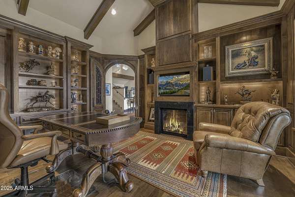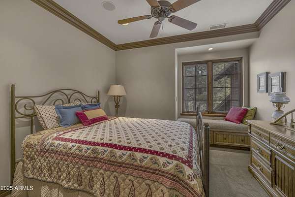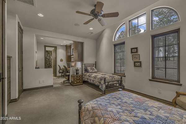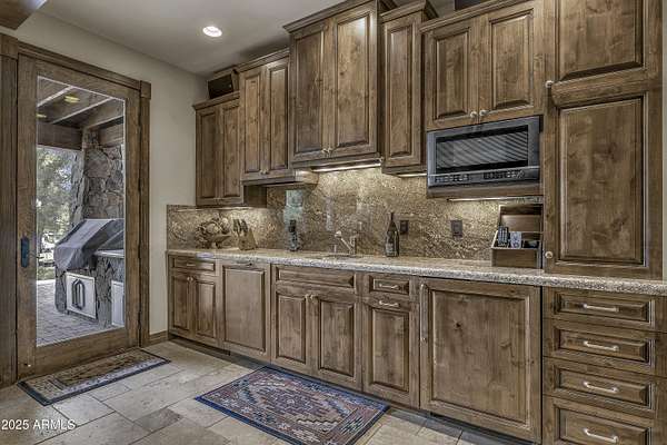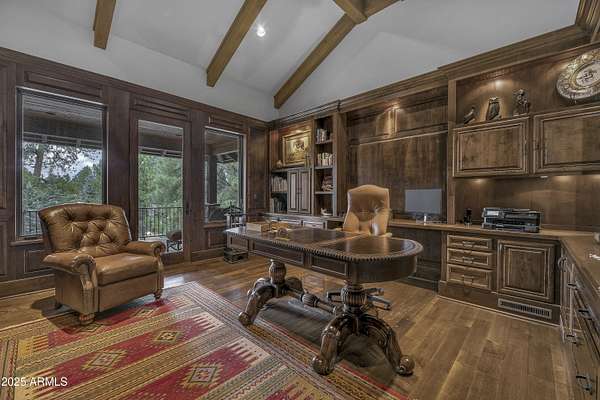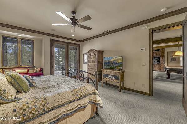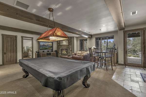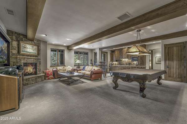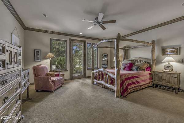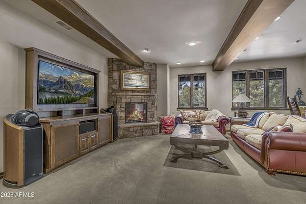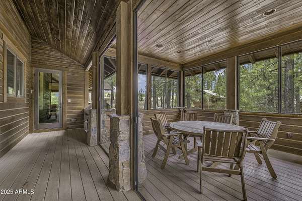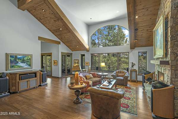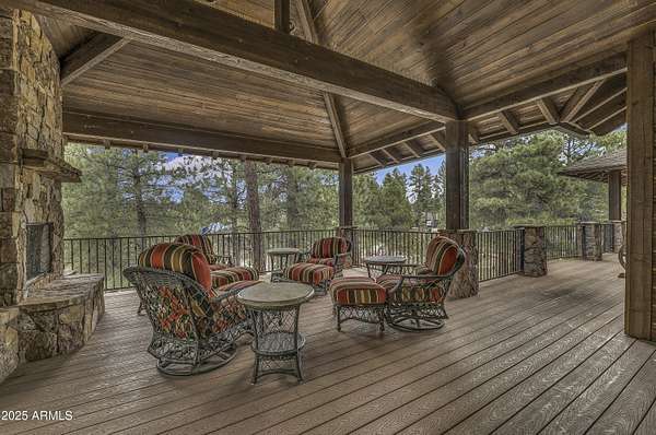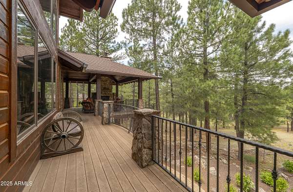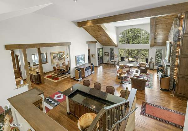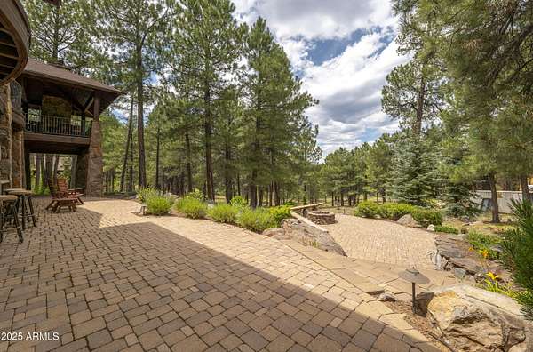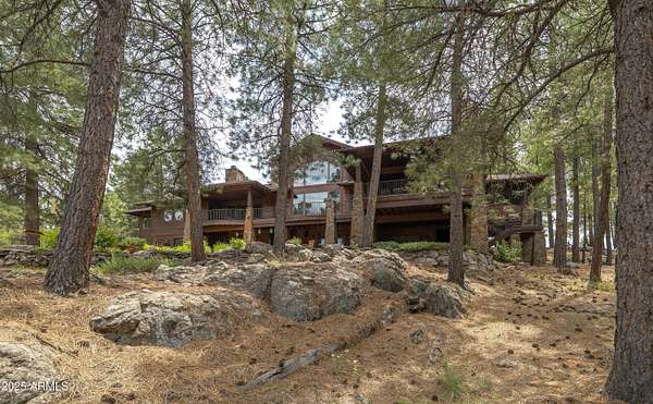A mountain masterpiece majestically perched high above the 16th hole of the Meadow Golf course at Forest Highlands with panoramic views of Ponderosa Pines and views of the San Francisco Peaks. Stunning craftsmanship with top of the line finishes throughout. Spectacular entertaining spaces on both levels with multiple family rooms, multiple decks and seating areas, firepit, full bar plus an additional wet bar downstairs and multiple built-in BBQ grills. In addition to the 5 bedrooms, there is a large office with views, a fitness room and another large bedroom/office combo room with versatility. The chef's kitchen is centrally located with direct access to the great room and large covered deck. Top it off with central A/C and a 4-car garage!