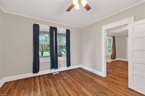 Recent updates include fresh interior paint, refinished hardwood floors, and durable waterproof laminate flooring. Upstairs offers a bedroom, flexible living space, and a bonus nook good for an office or reading area, along with a large walk-in attic for storage or future expansion.