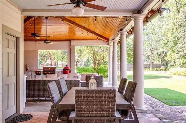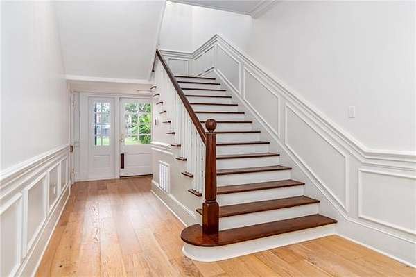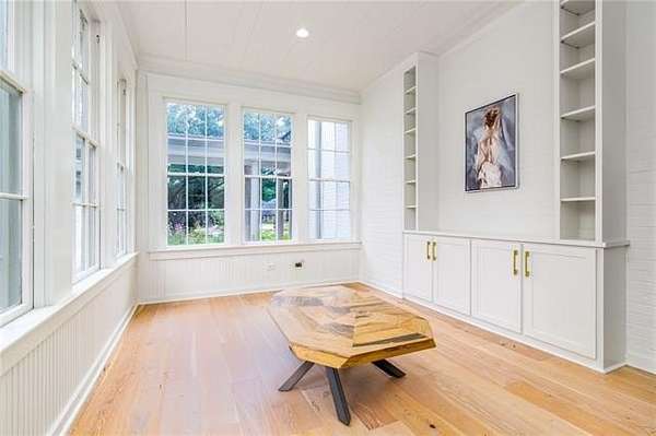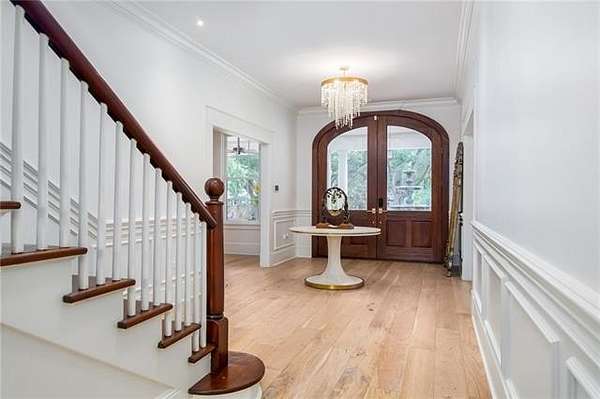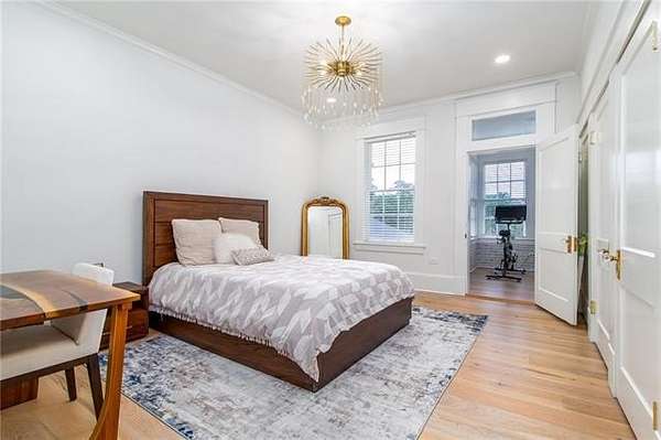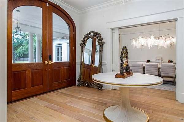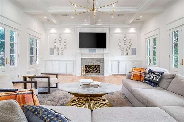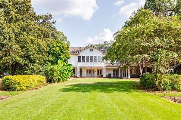 Welcome to this impeccably restored Southern classic, where historical charm meets modern luxury. This remarkable residence is a true masterpiece, blending grand elegance with comfortable living. The family room, with its 12-foot coffered ceilings and eight custom French doors, offers sweeping views of lush gardens, setting the tone for the home's exquisite design.