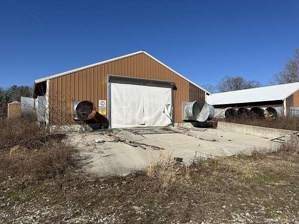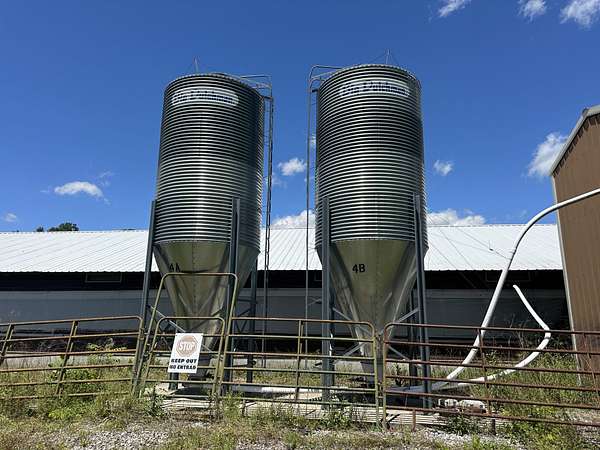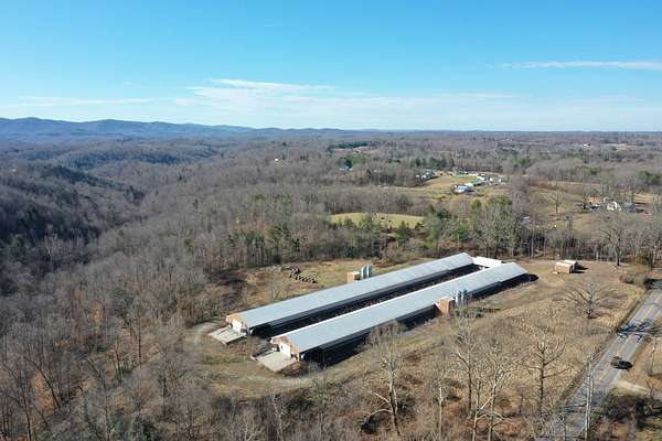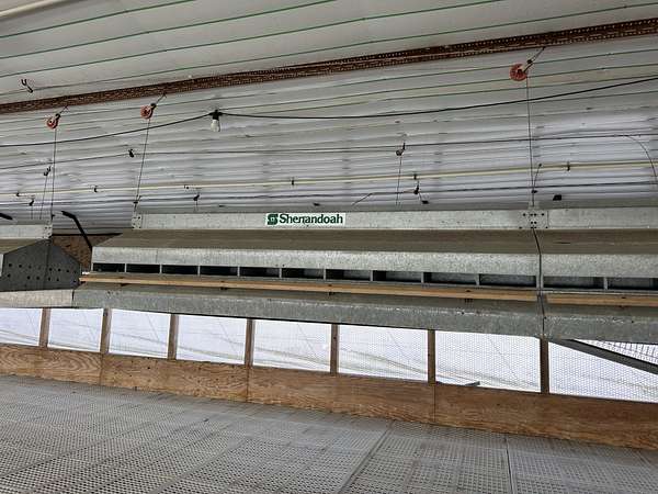 The poultry houses were formerly in production with Cobb as a grandparent farm. The houses are four 40x400 and were built in 2008 & 2009. Constructed with fully concreted floors, plastic slats, Shenandoah nests, pan male feeders, chain hen feeders, Lubing Drinkers, and one set of houses has the egg rooms included. These houses could be converted to commercial table eggs easily. Some components of the poultry houses has been removed. Seller conveys the poultry houses as is.