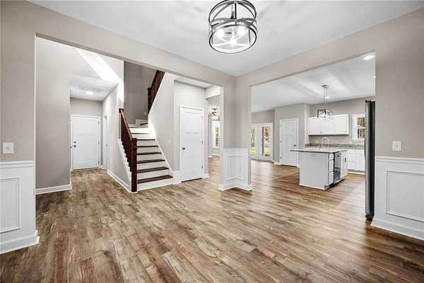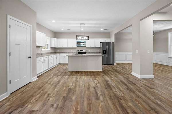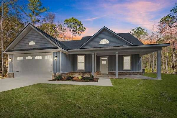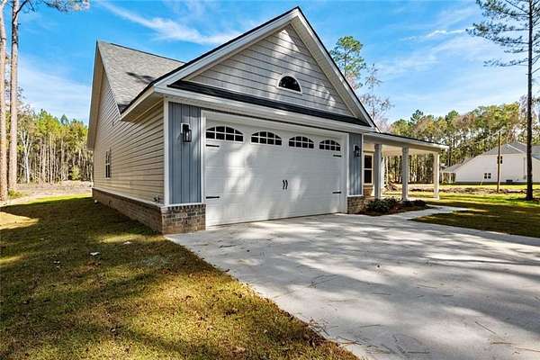 New Construction - by Maybank Partners: Introducing the Golden Eagle, a stunning two-story home by Maybank Partners, nestled on a beautiful 3.66-acre lot in peaceful McIntosh County. Conveniently located just 10 minutes from Exit 67 on I-95 and 35 minutes from Fort Stewart, this home provides the perfect mix of country living and easy access to nearby cities. This 2055 sqft home offers 4 spacious bedrooms, 2.5 bathrooms, and a home office, perfect for a growing family or anyone in need of extra space. The open-concept floor plan seamlessly connects the great room, dining area, and kitchen, which is equipped with granite countertops, stainless steel appliances, and a large island for cooking and entertaining. The cozy fireplace with butcher block cabinets and a shiplap mantel adds a touch of charm and warmth to the living area. The primary bedroom is conveniently located on the main floor, offering privacy and comfort. The luxurious master bath features tile flooring and a beautifully tiled shower. Upstairs, you'll find 3 additional spacious bedrooms, a full bath, and an open loft area perfect for a second living space or playroom. Step outside to the 14x15 covered back porch, perfect for enjoying the outdoors and taking in the expansive views of your private lot. The home features wood shelving throughout, adding character and ample storage space. Plus, with luxury vinyl plank flooring throughout, this home is as beautiful as it is practical. With a deep well and a two-car garage, this home offers all the amenities needed for modern living while embracing the peace and privacy of country life. Schedule a viewing today to see all that the Golden Eagle has to offer! Disclaimer: All images used are for illustrative purposes only and may not represent the final product. Schedule a viewing to see the home's true potential.