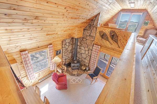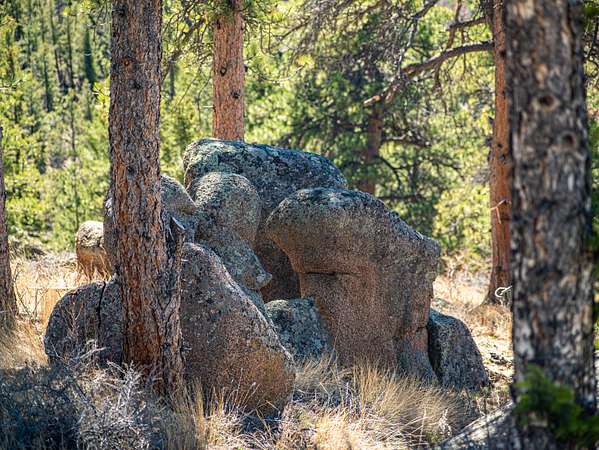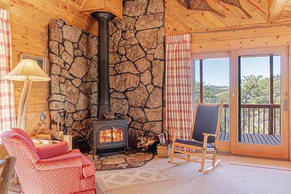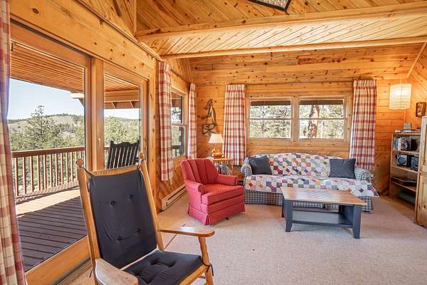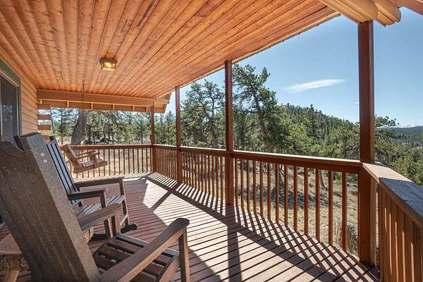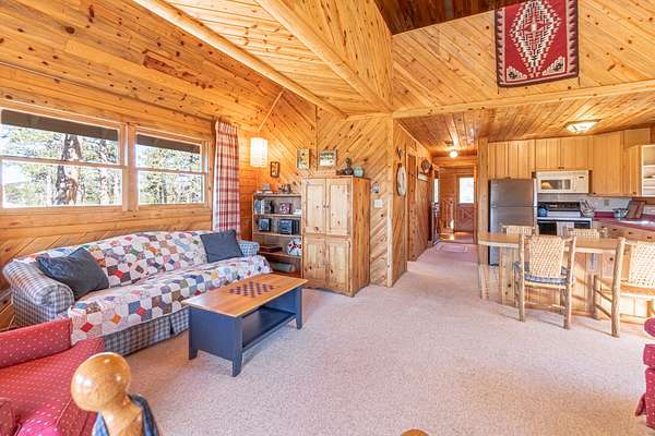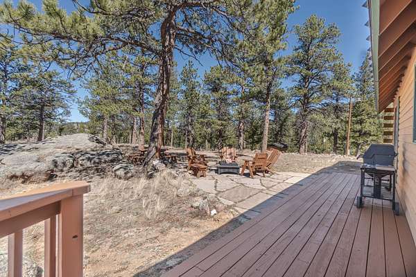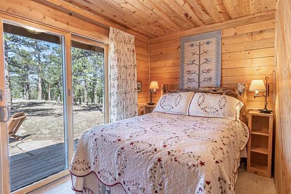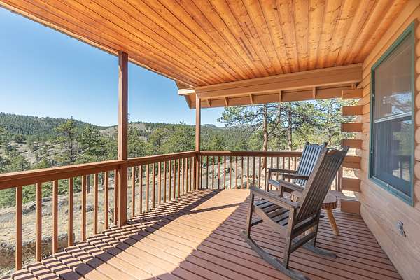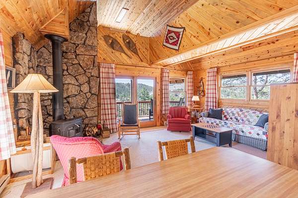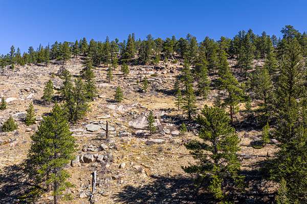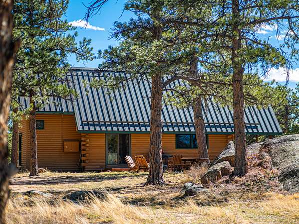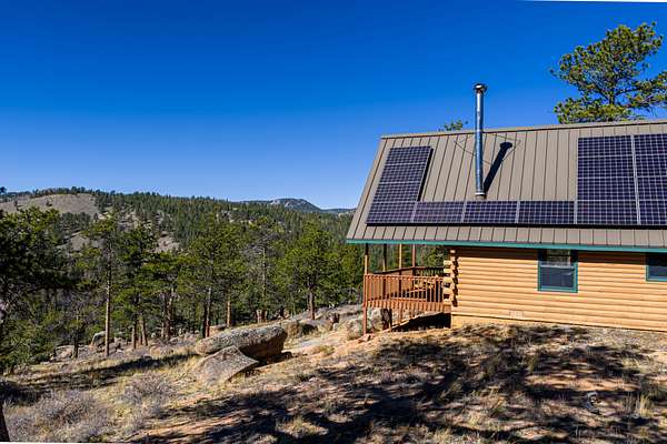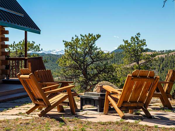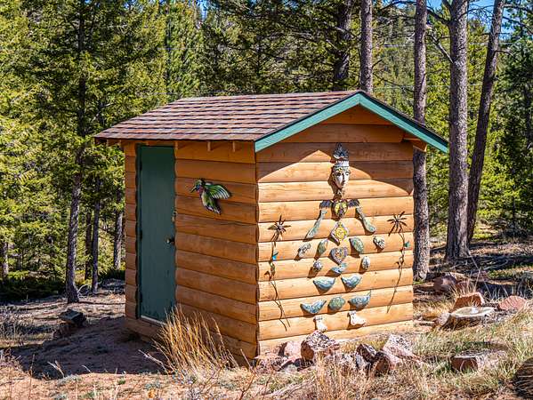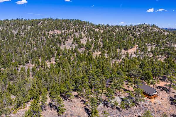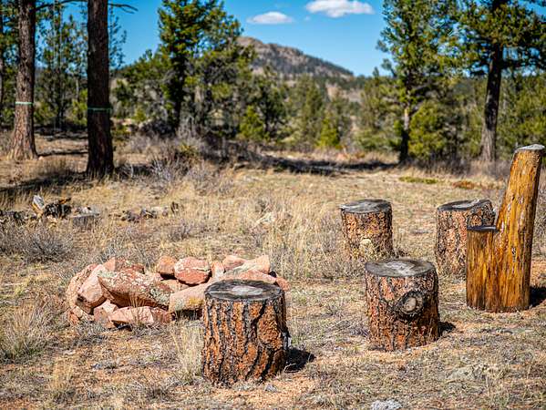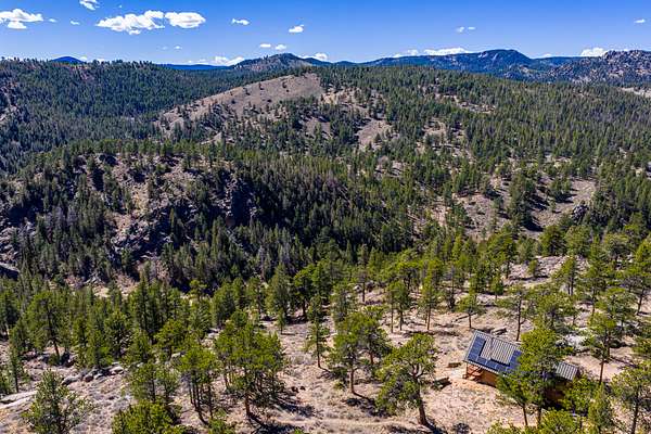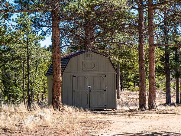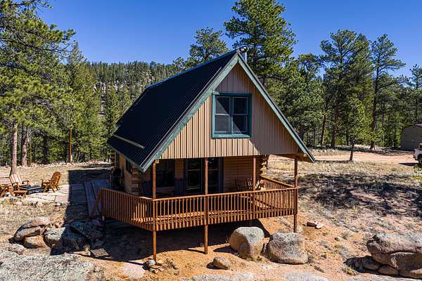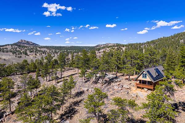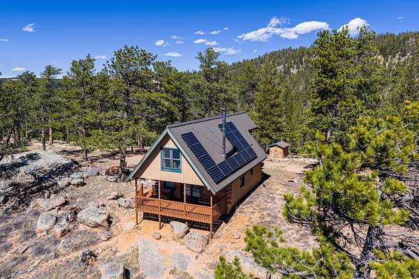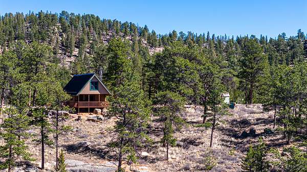 Sitting within a stand of mature ponderosa pines, this charming 2-bedroom, 1-bath cabin offers a true mountain retreat feel. On one of the higher points of the property, it provides both privacy and incredible views. Inside, you’ll find a full kitchen, baseboard heat, and a large woodstove with a rugged stone surround. Windows throughout the cabin allow ample amounts of sunlight for incredible natural lighting throughout the day. Sliding glass doors off the living room open to a back porch with great views of the Mummy Range. Just steps away, a flagstone patio with a firepit is the perfect place to watch the sunset. Across the drive sit two solid, well-built storage sheds, ready for your ATV, tools, and all the gear that comes with mountain living.