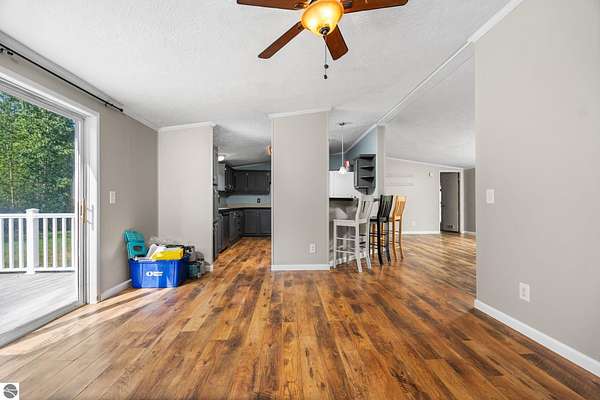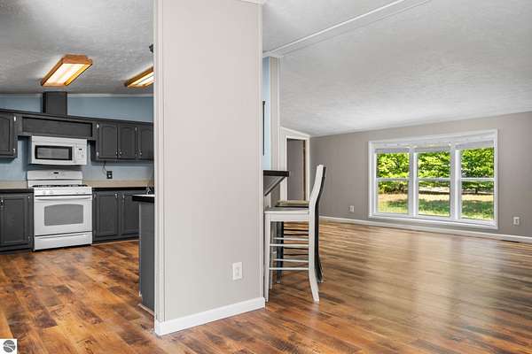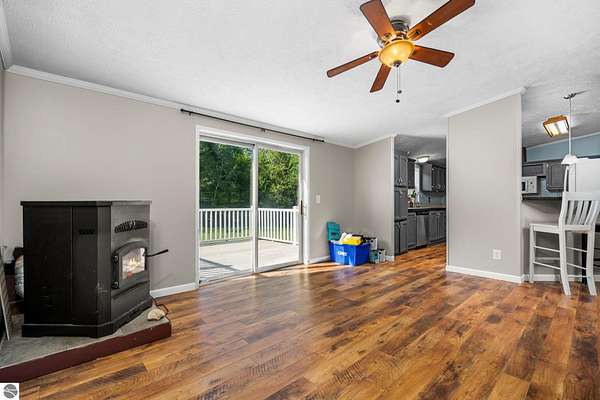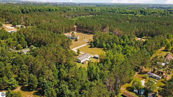 Room to roam, just minutes from town! This inviting 3-acre property offers a beautifully maintained yard with mature trees and the perfect balance of privacy and convenience - only 8 miles from downtown Traverse City and 1.5 miles from Menards and Chums Corner. Priced below recent appraisal, offering instant equity! Thoughtful updates include minor roof repairs (see photos in additional documents) and fresh interior touch-ups, such as newly painted bedroom doors and two coats of ceiling paint throughout. Inside, you'll find a bright and open 3-bedroom, 2-bath home where the kitchen, dining, and living areas flow together under high ceilings. The primary suite feels like a retreat, featuring a jacuzzi tub, separate shower, and dual vanities. Recent improvements include deep cleaning, updated flooring, freshly painted walls and ceilings, and newer appliances. A cozy wood pellet stove provides warmth and charm through the cooler months. Step out onto the back deck to sip your morning coffee while watching deer wander through the trees. The property also includes a 1-car garage pole building with a concrete floor - ideal for storage, hobbies, or a workshop. With its peaceful setting, recent updates, and location close to everything, 2737 S Pine Aire Drive offers the best of both worlds - comfort, value, and space to truly call your own.