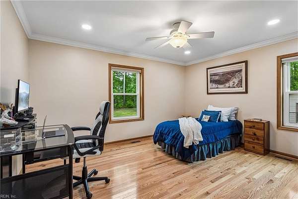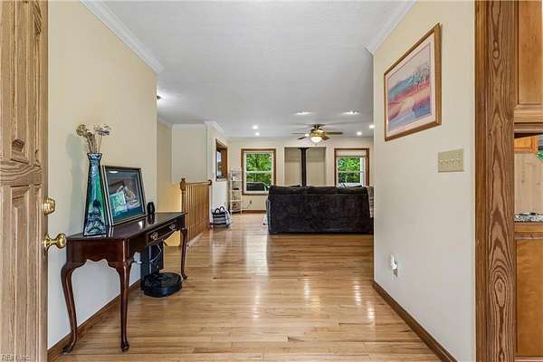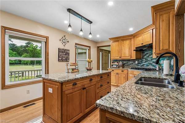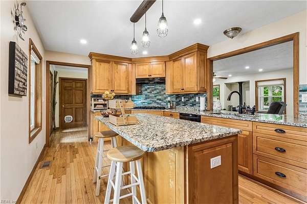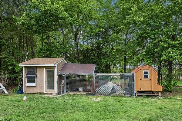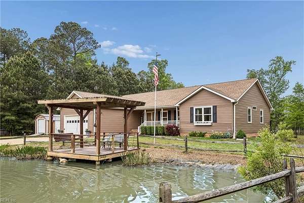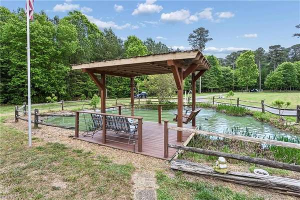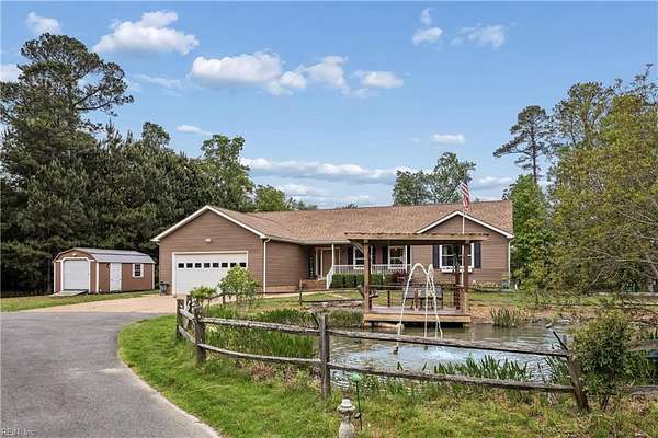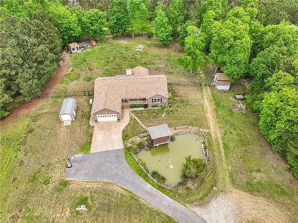 Charming country retreat on 2.79 acres, zoned A1 in the heart of Williamsburg! This beautiful home offers the perfect blend of privacy and convenience, just minutes from shopping, dining, and historic attractions. Inside, you’ll find a remodeled kitchen, featuring new cabinets, granite countertops, and new appliances, along with updated flooring in select areas, and fresh interior paint in key spaces. Major upgrades include new windows, a whole-house generator, newly paved driveway and an EV charger. The finished basement expands your living space with a rec room, an office, media room, 4th bedroom, full bathroom and kitchenette—ideal for flexible living or entertaining. Outdoor features include a newly paved driveway, new rear fencing, greenhouse, 2 electric-equipped chicken coops (chickens convey), 2 sheds, and a stocked pond with a fountain. Relax on the freshly painted deck and gazebo, while enjoying peaceful acreage backing up to the pipeline which provides a natural buffer.