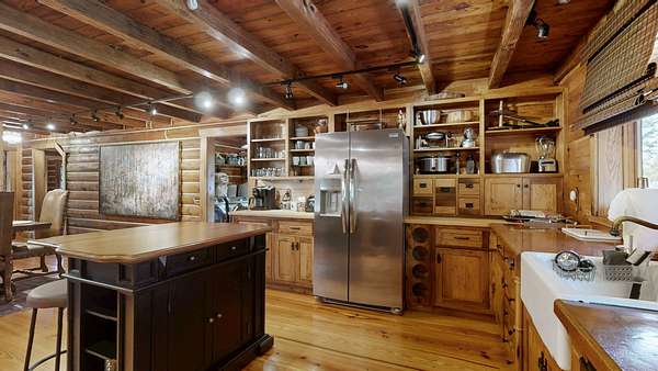 This home is a true show stopper where luxury meets rustic charm. Nestled on a private 2-acre oasis in the heart of Thompson's Station, this one-of-a-kind log home has been completely transformed from top to bottom. The main home features soaring wood ceilings, stunning remodeled bathrooms, and gorgeous fixtures throughout. Every inch has been refreshed -- from the newly painted exterior to all new landscaping that beautifully frames the home's natural setting. The kitchen and living areas flow effortlessly, showcasing the craftsmanship and warmth of the wood details that make this home so special.
