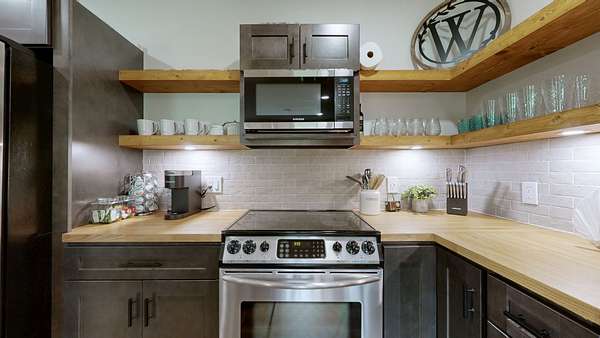 - Cooktop, Dishwasher, Disposal, Electric Oven, Microwave, Refrigerator