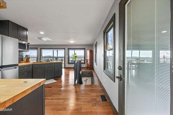 Private 2.8 ac lakefront living with endless possibilities! Year round water with boat dock! This property features a two-story lakefront home with many updates and amazing views and over 1,200 sq ft of additional living space above the garage! Bring the boat!! This home is perfect for entertaining with its own private floating dock and lakefront covered deck to enjoy those awesome views of the lake see year-round! The main home features an open floor plan with lots of natural light, featuring a gourmet kitchen with custom cabinetry complete with butcher block countertops, stainless steel appliances and beautiful stone backsplash, a spacious living and dining area also great for entertaining and one bedroom and bath all on the main level. The lower level boasts an expansive master suite which was originally two bedrooms but converted into one large master suite, complete with a spacious walk-in closet! There's also plenty of room to grow, or bring your friends and family, with three additional lots available that are adjacent to this property for $100K Check MLS# 310604