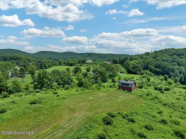 This elevated offering on 20.81 ares with a distant view of the Empire State Plaza is a perfect opportunity for creating an investment of one or more houses or as a private year-round residence. Surrounded by wooded hills and higher elevations of wooded views that provide a profusion of color throughout the year. The majority of an infrastructure has been installed, from an engineered driveway with culvert to a drilled well (10 gpm) and buried National Grid electrical service. A two-story barn was built in June 2014 and electric service in 2016. The stand alone barn is perfect for downsizing, an office, art studio, guest house or storage.
