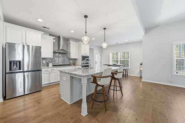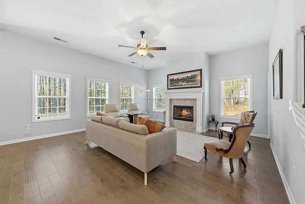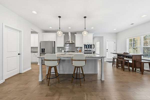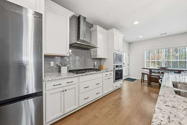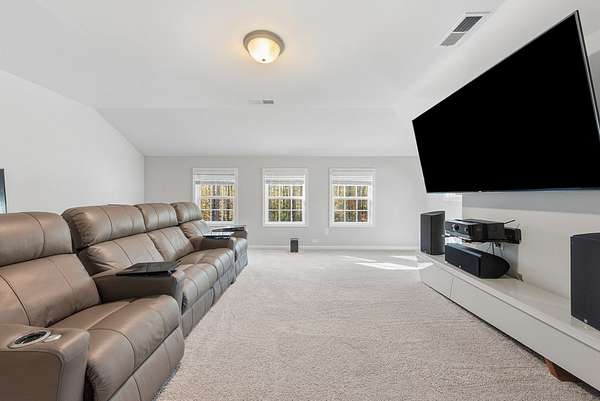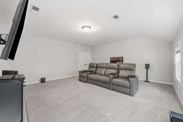 Impressive 5BR/4.5BA Magnolia Floor Plan on 2.1 Acres - Like New & Meticulously Maintained. Discover luxury living in this less-than-three-year-old, impeccably maintained 5-bedroom, 4.5-bath home offering 3,669 SF of thoughtfully designed space on a flat 2.1-acre lot with a serene wooded backyard. Located on a quiet street leading to a cul-de-sac and surrounded by estate-style lots, this property provides privacy, beauty, and comfort-all within the desirable Harris County School District, making it an ideal choice for families. Interior Highlights: High-end flooring throughout including premium LVP, plush carpet, and elegant tile. Formal dining room featuring a beautiful coffered ceiling-perfect for gatherings. Main-level guest suite w/private full bath, ideal for visitors or multigenerational living. Open-concept main living area with a spacious family room and a never-used, wood-burning fireplace. Gourmet kitchen that checks every box: Large island with bar seating, Granite countertops, 5-burner gas cooktop, Wall oven & microwave, Walk-in pantry, Light-filled breakfast area with views of the backyard. Mudroom conveniently located off the 3-car garage, plus a separate laundry room. Half bath on the main level for guests. Owner's Retreat: Upstairs master suite is oversized and luxurious. Spa-like master bath includes: Double wrap-around vanity, Large soaking tub, Beautiful tiled shower, Spacious walk-in closet. Upper-Level Living: Dedicated movie theater room (20.8' x 18.5'), wired for sound-perfect for entertainment. Two additional bedrooms connected by a Jack-and-Jill ensuite bath. One more bedroom with its own private ensuite bath. Outdoor Living: Covered game-day porch complete w/: Never-used, wood-burning fireplace; Built-in speakers; TV wall mount; A/V hookups. Outdoor space ready for year-round enjoyment and entertaining. Property offers the perfect bland of modern luxury, meticulous care and peaceful surroundings. Don't miss this opportunity!