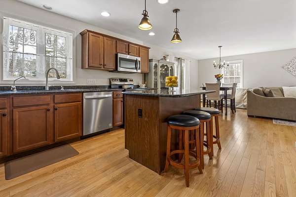 Space to Breathe. Room to Grow. Welcome to 274 Pleasant Street in Epping — a well-built 2015 Cape tucked on more than 2.5 gorgeous, flat acres with space for work, play and everything in between. You'll love the long driveway away from the road and pulling into your 2-car garage with direct entry that makes you feel immediately at home. The main level flows beautifully from the moment you walk in. The kitchen is ready for all your recipes and memories with granite counters, stainless appliances and a kitchen island — all opening to a bright dining area perfect for everyday meals or holiday gatherings. Natural light pours through the home, highlighting the hardwood floors and making every room feel warm and welcoming. There's also a dedicated home office on this level — work from home never looked so good. A convenient half bath with laundry area rounds out the main floor. Upstairs you'll find three bedrooms including a generous primary suite with walk-in closet and updated bathrooms throughout. Everyone has room to spread out! Step outside to your deck and take in the peace and privacy of your beautifully landscaped yard — the lawn irrigation keeps everything lush and green all season long. Enjoy the natural body of water out your back door for the most amazing view of nature and all its little creatures. This one checks all the boxes at a fantastic price point. Won't last! Book your tour today!