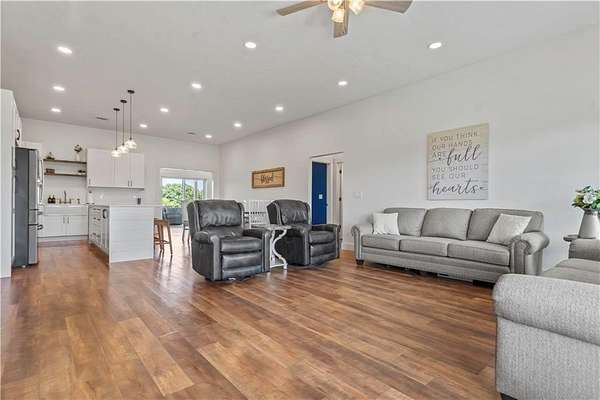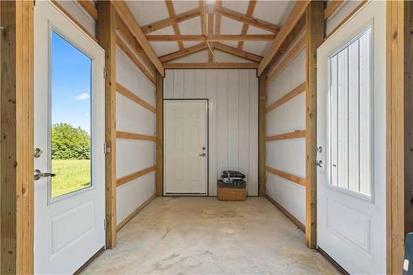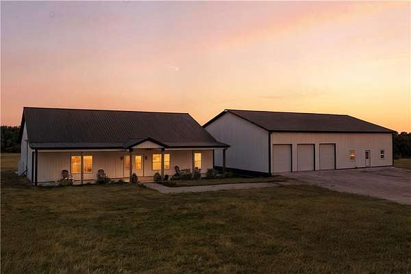 Escape to your own private retreat on 50 +/- acres just outside of Ottawa, KS. Tucked down a private drive, this peaceful and rural property blends seclusion with convenience-restaurants, groceries, and daily needs are only minutes away, while Olathe, Overland Park, Lenexa, and Shawnee can be reached in under an hour. At the heart of the property sits an amazing 2,352 +/- sq. ft. home featuring 4 bedrooms and 3 bathrooms that was newly constructed in 2023. The residence overlooks a landscape of rolling pasture and hardwood timber, offering comfort alongside scenic views. Another highlight of the property is the impressive 50x70 (3,500 sq. ft.) shop that is attached to the home, designed with versatility in mind. It includes three garage doors, a separate power panel, water service, and plumbing to build out a full bathroom. Inside, you'll find ample storage shelving, space for vehicles, ATVs, tractors, and equipment, as well as an area for basketball and pickleball. This shop is an ideal blend of function and recreation. The land itself is a recreational paradise. A mix of open pasture and mature woods, including stands of black walnut, provides excellent cover for wildlife. The Marais Des Cygnes River forms the northern border, delivering great fishing opportunities and enhancing the property's natural beauty. Deer and turkey are abundant, offering exceptional hunting potential. The pastures also provide revenue opportunities through hay production. Additional improvements include a chicken coop for raising poultry. Whether you're seeking a secluded homestead, a hunting and fishing retreat, or a multi-use recreational farm with income potential, this property offers a rare combination of location, land diversity, and high-quality improvements.