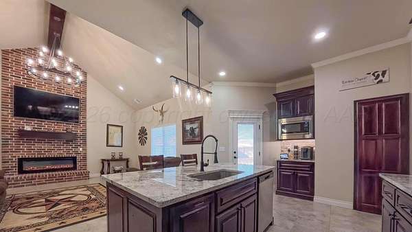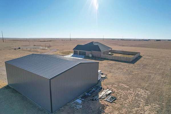 Just like new, built in 2022. 4 bedroom/2bathroom cul de sac home on 11.85 +/- acres. Completely fenced. Roof replaced June 2025. All electric home. Fireplace w/glass marbles that is color changing and heats. Large living room. One bedroom could be used as an office with 2 closets. Hall bath has built in shelving for towels & 2 sinks. Large formal dining area. The large utility room has counter space & a closet. Very nice cabinetry throughout. Mud bench from house to garage. Kitchen, with a big island, has pull out spice storage and has lots of room for all chefs. Primary bathroom has his and hers vanities. Separate freestanding tub & shower. Primary closet has built-ins. Attached garage is 26' deep. Oversized 3 car (room for crew cab dually pickup). Fenced backyard. 50 x 40 shop with 16' tall door and 2 14' doors with electricity. Sprinkler system front, back & sides. Very well cared for 2.5 year old home. Smart switches wired to wifi for sofit lights, front porch lights, driveway lights. TV mounts stay, but not TV's.