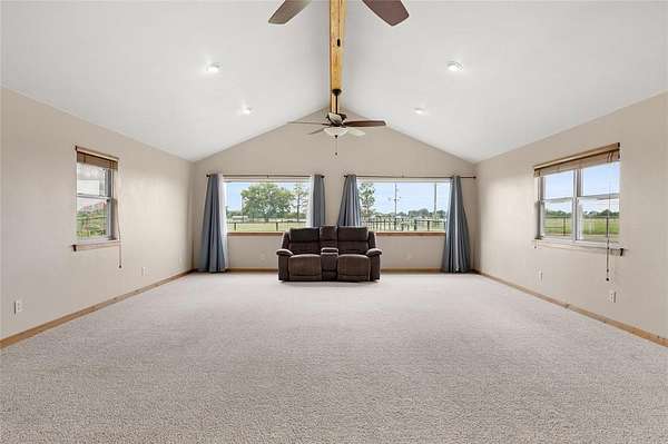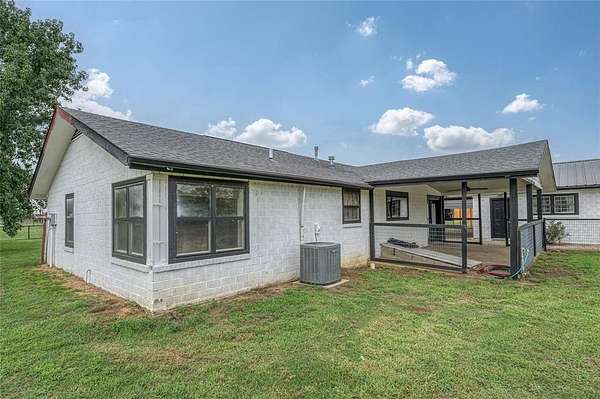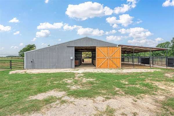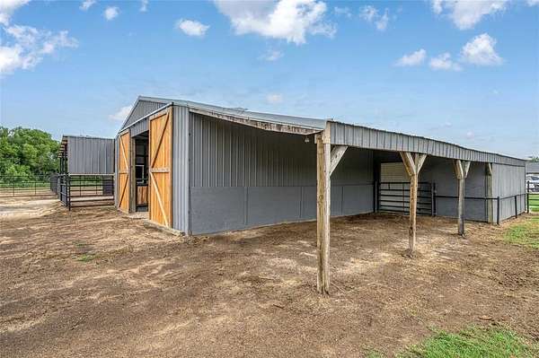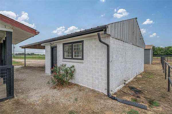 Attention horse owners and trainers! Properties of this size conveniently located to town and the DFW Metroplex is rarely available. Located just 1.7 miles east of Whitesboro, this incredible property offers the benefits of the country with the convenience of town - with modern updates and ample space for both living and equestrian needs. The home features sleek granite countertops, stainless steel KitchenAid Pro Line appliances, an oversized built-in Frigidaire refrigerator-freezer, a 5-burner gas cooktop and an eat-at bar in the kitchen island which has a convenient bar sink. Everything the enthusiastic cook or budding chef needs for gourmet meals. The adjacent dining and living area is perfect for entertaining with more than enough room to accommodate your furniture and guests comfortably. The primary bedroom offers lots of natural light and a generous walk-in closet. The spacious bath includes a separate soaking tub and a large walk-in shower - the perfect retreat after a long day. Step outside to a large, covered back patio with direct access to a storm shelter for peace of mind and access to the large fenced yard. For overnight guests or as an office space, there's a 411 SF apartment with a washer-dryer hookup and a full bath. The 72x50' barn is fully equipped for serious horse enthusiasts, with a 19x13' storage room including a bathroom with a shower. The interior barn features five(5)-16x10' stalls. 3 of the stalls have direct access to covered outdoor runs on the north side of the barn. These runs could be used as additional stalls. There is a 15x29' overhang for covered storage on the south side facing SH 56. The property is fully fenced and cross-fenced with top rail and slick wire, providing security for your animals. There is a generous sized pen behind the barn for training purposes. A covered area for your trailer-RV and an extra building for hay and feed storage make this property move in ready for you and your horses. Call now for an appointment.