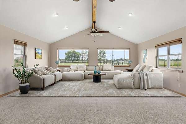 Attention horse owners and trainers! Property of this size conveniently located to town and the DFW Metroplex is rarely available. Located just 1.7 miles east of Whitesboro, this incredible property offers the benefits of the country with the convenience of town - with modern updates and ample space for both living and equestrian needs. The home features sleek granite countertops, stainless steel KitchenAid Pro Line appliances, an oversized built-in Frigidaire refrigerator-freezer, a 5-burner gas cooktop and an eat-at bar in the kitchen island which has a convenient bar sink. Everything the enthusiastic cook or budding chef needs for gourmet meals. The adjacent dining and living area is perfect for entertaining with more than enough room to accommodate your furniture and guests comfortably. The primary bedroom offers lots of natural light and a generous walk-in closet. The spacious bath includes a separate soaking tub and a large walk-in shower - the perfect retreat after a long day. Step outside to a large, covered back patio with direct access to a storm shelter for peace of mind and access to the large fenced yard. For overnight guests or as an office space, there's a 411 SF apartment with a washer-dryer hookup and a full bath. The 72x50' barn is fully equipped for serious horse enthusiasts, with a 19x13' storage room including a bathroom with a shower. The interior barn features five(5)-16x10' stalls. 3 of the stalls have direct access to covered outdoor runs on the north side of the barn. These runs could be used as additional stalls. There is a 15x29' overhang for covered storage on the south side facing SH 56. The property is fully fenced and cross-fenced with top rail and slick wire, providing security for your animals. There is a generous sized pen behind the barn for training purposes. A covered area for your trailer-RV and an extra building for hay and feed storage make this property move in ready for you and your horses. Call now for an appointment.