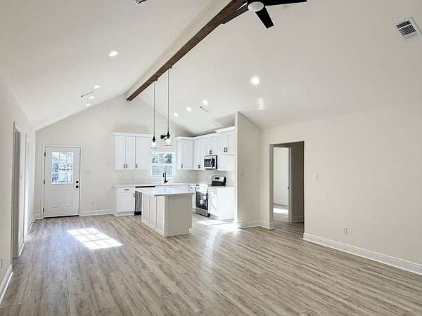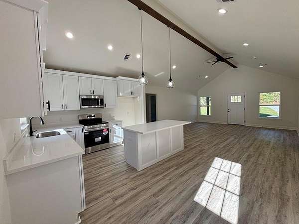 Est $1,327/moGORGEOUS NEW HOME ON 4.65 QUIET ACRES SURROUNDED BY WOODS! This beautiful 3 bedroom 2 bath home has an open floor plan with cathedral ceilings, white shaker cabinets, and gorgeous quartz counters throughout. Beautiful wood beam and black fixtures really show the quality details! Custom wood shelving and a master closet to die for! Gorgeous pond, and back. These are not actual photos but of same builder plan. Materials/colors may vary.
