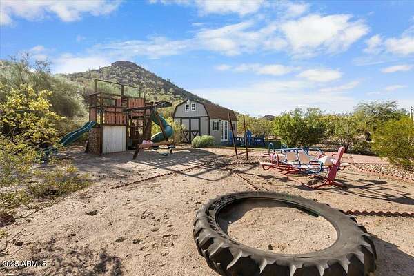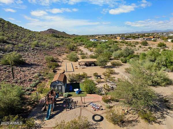 Private Hillside Compound: 20+ Acres with Views & Development Potential Under 800 Characters Redo (with added details): RARE FIND! 20+ acres on a hillside in N. Surprise with breathtaking mountain views. $0 Water Bills (private well) + recent upgrades! Outdoor Paradise: Large entertainment area with bocce ball, gazebo, playground, and storage shed. Investor Opportunity: Price includes 4 additional buildable parcels-subdivide, sell, or create your own massive compound! Ultimate privacy & potential. Come see this unique estate!
