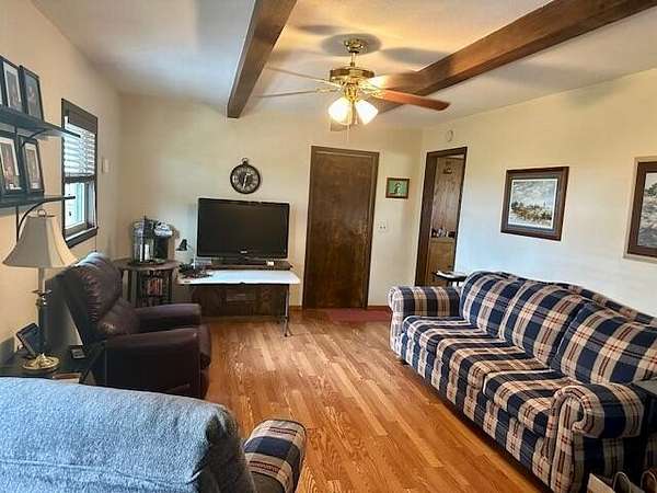 This sweet Ranchette is located just 7 miles from Grand Lake of the Cherokees and less than 2 miles from the turnpike. 15 flat acres that could be developed. Rural water and well water are on this property. 2-car garage with workspace, and a nice-sized barn. 3 Bedroom home has been lovingly cared for; with timeless hardwood floors, newer windows, open concept kitchen/living, and an extra family room. Creek for horses or cattle, pear and pecan trees as well as a lush asparagus bed. This is quiet country living on a black top road, just a short way from town. With this property, you get the best of both worlds!