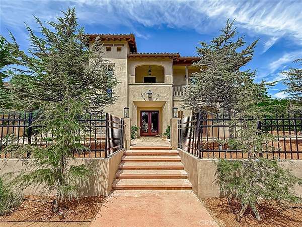 Stunning Mediterranean estate in a small gated, quiet community. Built in 2019, this remarkable home sits on 3.6 acres of opulent beauty and privacy, surrounded by tranquil hillside vistas.