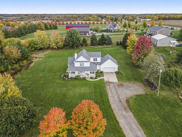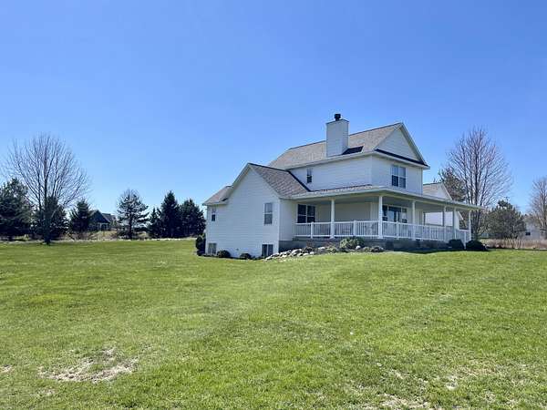 This custom-built home sits on 2.5 peaceful acres in the sought-after Hudsonville School District and features an attached two-car garage. With 5 bedrooms and 3 full bathrooms, it includes a main-floor primary suite with an ensuite bath for comfort and privacy. Enjoy beautiful views from the expansive wraparound porch, great for relaxing or entertaining. Inside, you'll find a cozy fireplace, two laundry hookups (including one on the main level) and a partially finished basement with a second family room. Recent updates include a new roof in 2024 and a whole-house generator hookup for added peace of mind. Whether you want room to grow, entertain, or simply enjoy quiet living with modern amenities, this property has it all. Don't miss your chance to make this one-of-a-kind Hudsonville home yours, schedule your showing today!