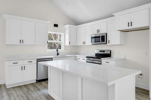 Est $1,438/moGORGEOUS NEW HOME ON ALMOST 5 QUIET ACRES SURROUNDED BY WOODS! This beautiful 3 bedroom 2 bath home has an open floor plan with cathedral ceilings, white shaker cabinets, and gorgeous quartz counters throughout. Beautiful wood beam and black fixtures really show the quality details! Custom wood shelving and a master closet to die for! All this on 4.89 acres!! The pictures are not of actual home but same builder/plan. Materials/colors may vary.