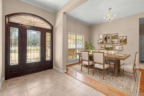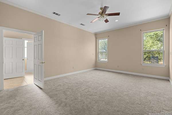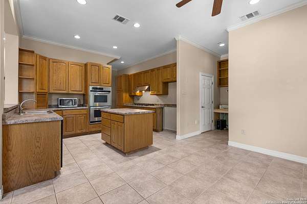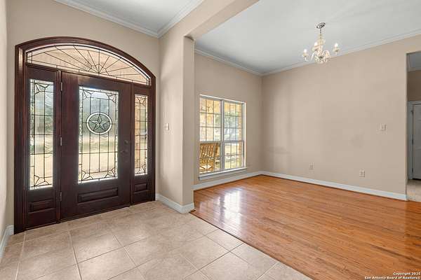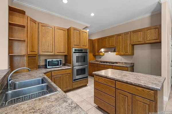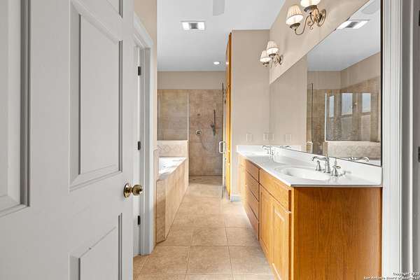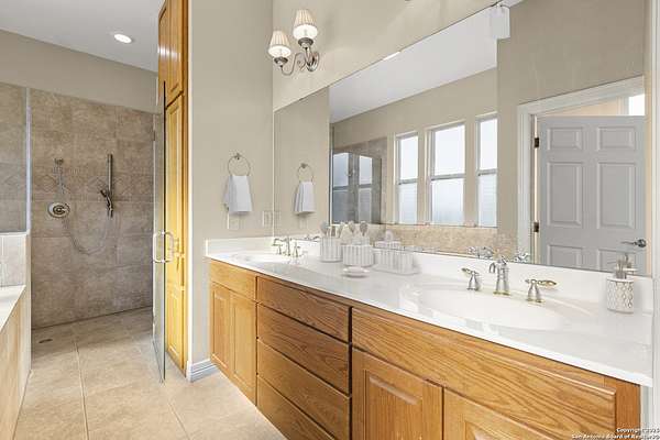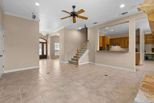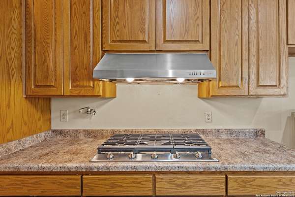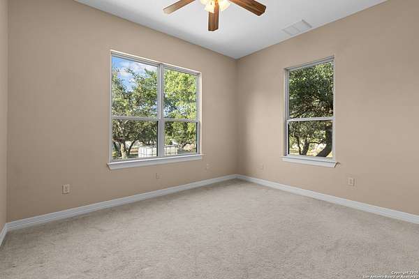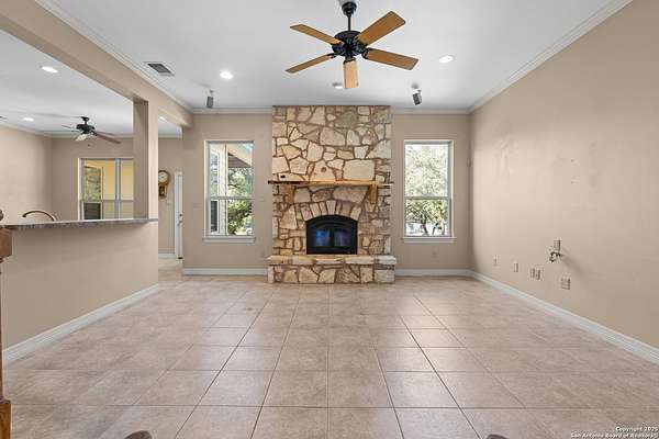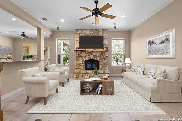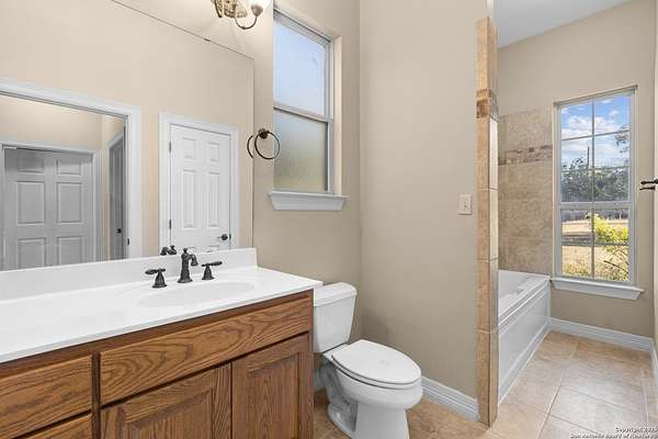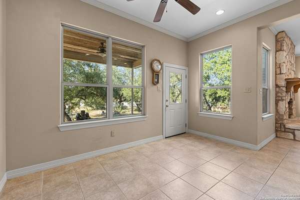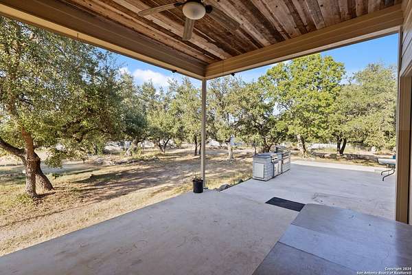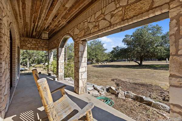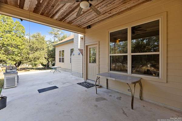 Nestled in the sought-after Oakwood Acres community, 27423 Kentoaks Drive offers the perfect blend of space, comfort, and convenience. Set on almost 2 acres, this home was built in 2002 and features 3 spacious bedrooms, 2.5 baths, and an inviting living area designed for both relaxation and entertaining. A cozy fireplace anchors the living room which is open to the kitchen, nook and back porch entrance. The kitchen and dining areas flow seamlessly, making everyday living a breeze. You will find custom oak cabinetry throughout. Both bathrooms offer oversized tubs so any height can enjoy a nice relaxing bath. The primary bathtub is not only oversized length wise, but has soaking tub depth. The primary is large and faces the back of the home and also hosts a huge primary closet. Both an attached and detached garage/workshop, which is 30 x 40, offer ample parking and storage, and the large yard provides endless possibilities for gardening, play, or creating your dream outdoor retreat. The mature oak trees give this property gentle breezes and curb appeal. Security lighting and cameras will convey. You will see from the brand new survey, there is plenty of room for a second home, casita, or pool with a cabana or pool house. Upstairs is an unfinished, open space with dormer windows waiting for the next owner to define the space. Square footage downstairs is 2148, while upstairs is 932. With a location that's just minutes from San Antonio's amenities while still offering a peaceful, private setting, this property is a true Hill Country gem ready to welcome its next chapter.