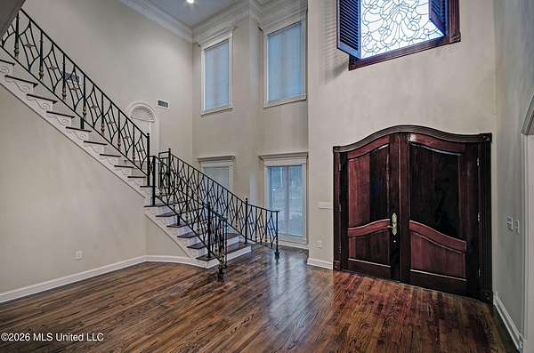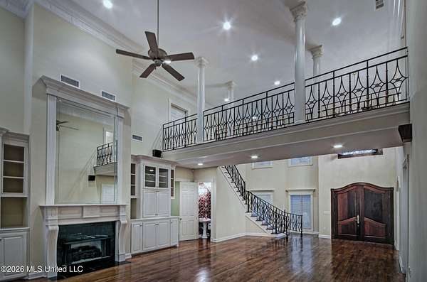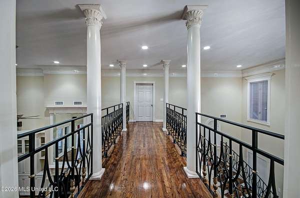 Conveniently located to downtown Brandon, this sprawling, well maintained home is ready to welcome you! First you'll notice the ornate detail of the iron fencing and double sets of entrance gates. Tons of parking, a 3 car garage and an enormous workshop speak directly to any concern you may have about storage or parking. Once inside the soaring ceilings, crown moulding, and grand staircase immediately draw the eye upward conveying a feeling of unlimited space for guests to spread out and enjoy. Downstairs you'll find the primary suite with tons of closet space and a bedroom-sized bathroom including double vanities and an oversized tub. There is no shortage of entertaining space with not one but two sunrooms, a generous living room, as well as a sizable keeping room each overlooking the patio, back yard, fountain and pond just beyond. Upstairs you'll find 3 bedrooms with ample closet space and two full bathrooms. If you're looking for space, this is the one! Make an appointment to see it today!