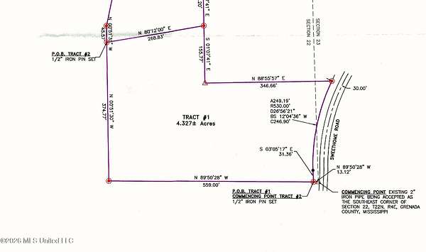 THIS PROPERTY IS A FRACTION OF THE SOUTHEAST QUARTER OF SECTION 22 AND A FRACTION OF THE SOUTHWEST QUARTER OF SECTION 23, TOWNSHIP 22 NORTH, RANGE 4 EAST, GRENADA COUNTY, MISSISSIPPI. THIS PROPERTY CONTAINS 4.327 ACRES MORE OR LESS