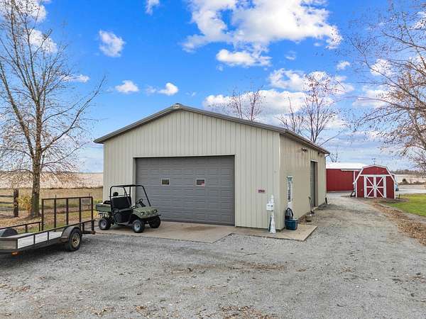 Step into the kind of home that feels like wide open freedom the moment you pull in. This sprawling 4 bedroom 3.5 bath ranch sits on just under 5 acres, offering the perfect blend of country living and everyday comfort. The 30x50 pole building has concrete floors, two heated offices, two overhead doors, and electric, giving you all the space you need for projects, storage, business, or hobbies. Inside, the heart of the home is a warm and oversized living room centered around a wood burning fireplace that opens into the formal dining room. The kitchen is bright and spacious with a sliding door that leads out to the huge backyard with a stamped concrete patio, storage shed, and wood play set overlooking the land. All four bedrooms are generously sized, including a true primary suite with a walk in closet and a full bath with a jetted tub for relaxing after a long day. Down the hall you will find three additional bedrooms and two more full baths, along with a convenient first floor laundry room with a powder room and a large pantry. The red barn in back is perfect for animals, complete with stalls, a dry lot, and an attached lean to. It is an ideal setup for horses, cattle, sheep, goats, or a full small hobby farm. The finished basement adds another level of living space with a cozy family room, an office, and an abundance of storage. All of this sits just south of downtown, close enough to get what you need yet far enough to breathe. Country living, space to grow, and room for every dream. Welcome home.