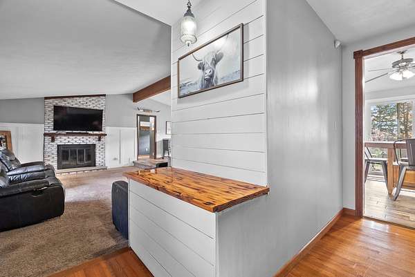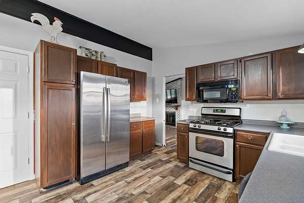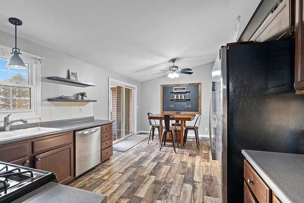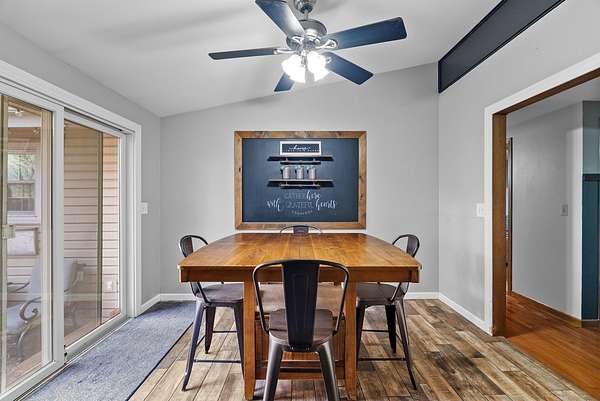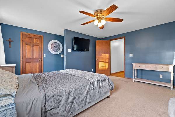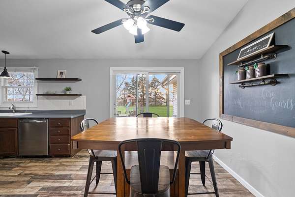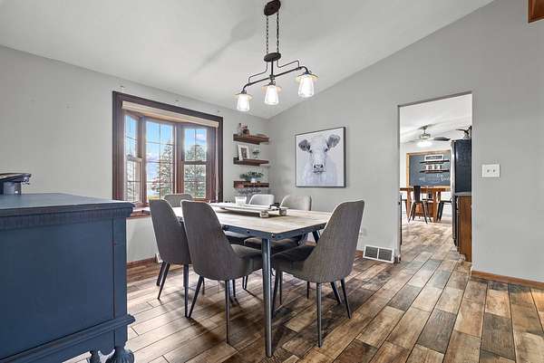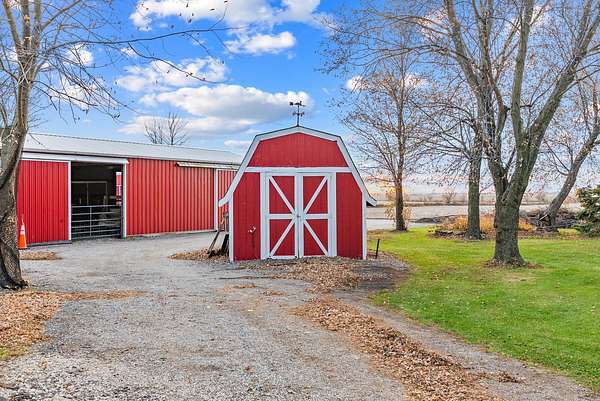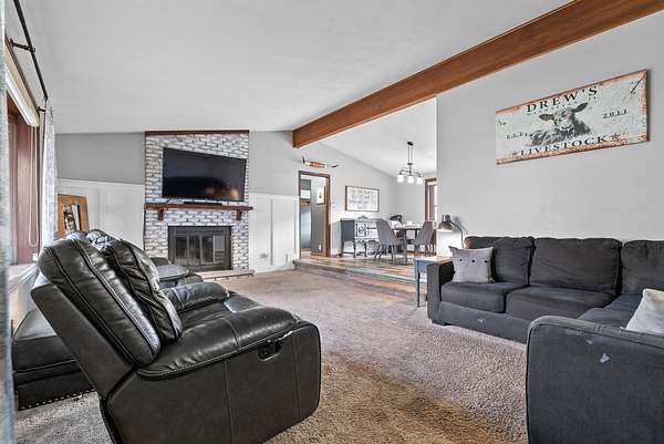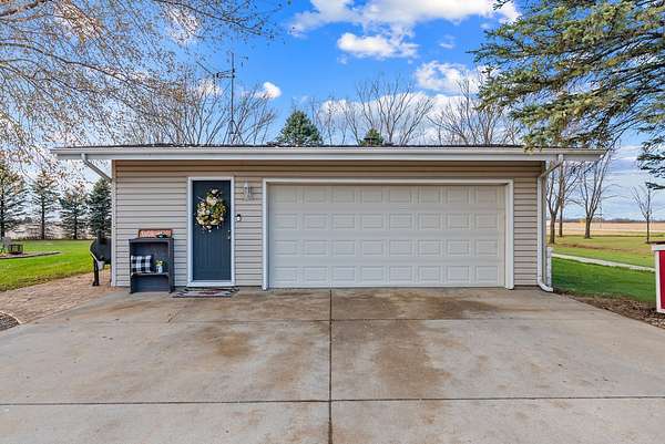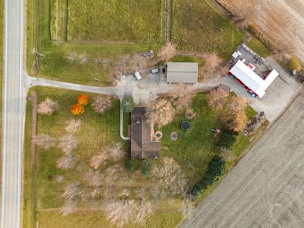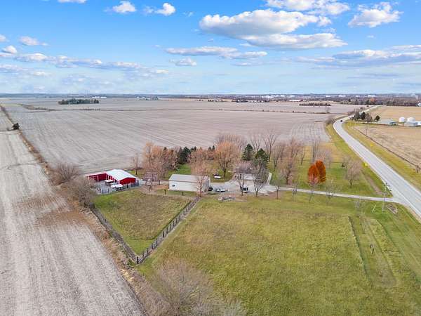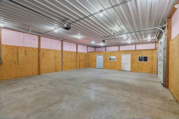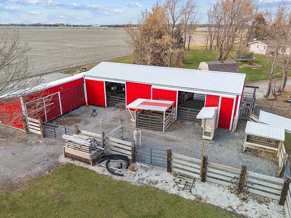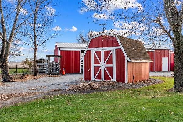 Step into the kind of home that feels like wide open freedom the moment you pull in. This sprawling 4 bedroom 3.5 bath ranch sits on just under 5 acres, offering the perfect blend of country living and everyday comfort. The 30x50 pole building has concrete floors, two heated offices, two overhead doors, and electric, giving you all the space you need for projects, storage, business, or hobbies. Inside, the heart of the home is a warm and oversized living room centered around a wood burning fireplace that opens into the formal dining room. The kitchen is bright and spacious with a sliding door that leads out to the huge backyard with a stamped concrete patio, storage shed, and wood play set overlooking the land. All four bedrooms are generously sized, including a true primary suite with a walk in closet and a full bath with a jetted tub for relaxing after a long day. Down the hall you will find three additional bedrooms and two more full baths, along with a convenient first floor laundry room with a powder room and a large pantry. The red barn in back is perfect for animals, complete with stalls, a dry lot, and an attached lean to. It is an ideal setup for horses, cattle, sheep, goats, or a full small hobby farm. The finished basement adds another level of living space with a cozy family room, an office, and an abundance of storage. All of this sits just south of downtown, close enough to get what you need yet far enough to breathe. Country living, space to grow, and room for every dream. Welcome home.