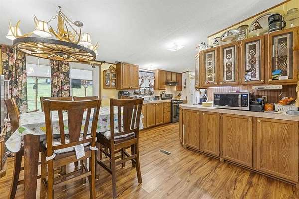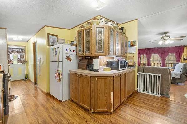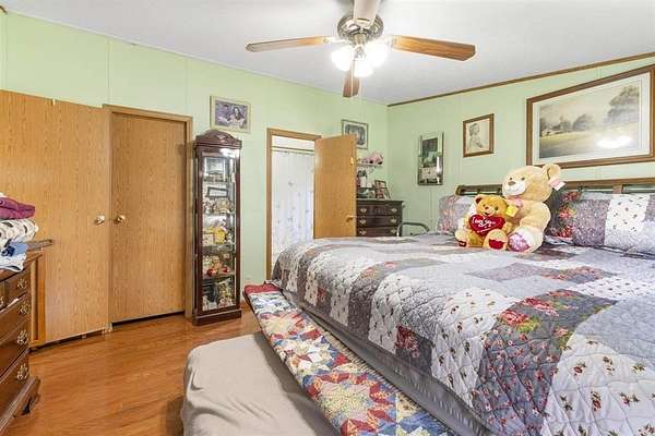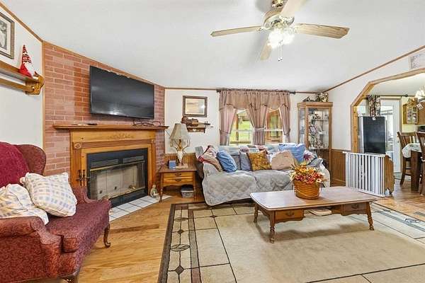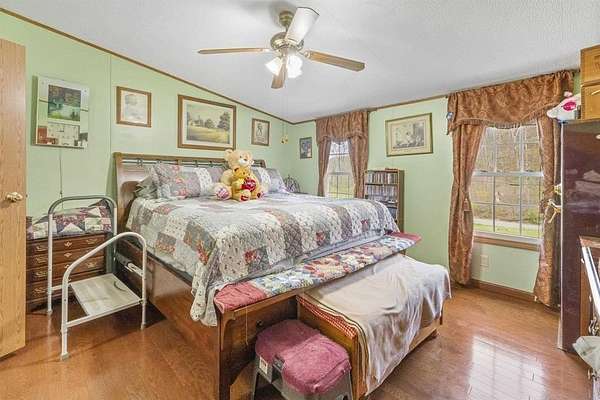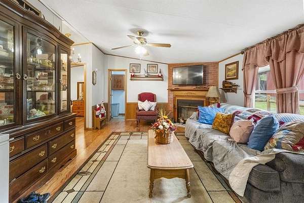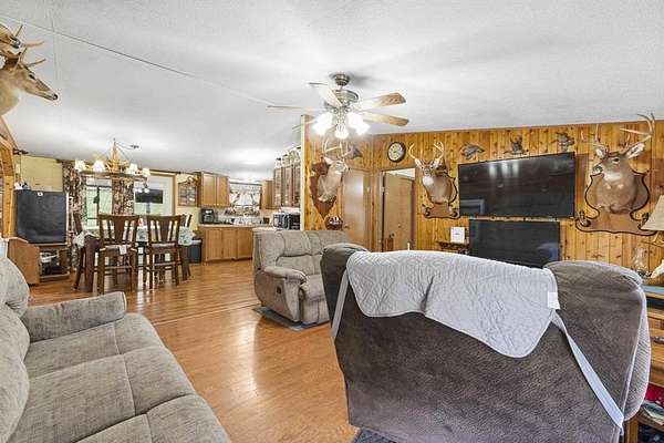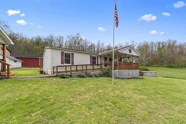 Escape to the peace and privacy of this charming 3-bedroom, 2-bathroom mobile home situated on approximately 114 +- acres of mixed woodland and open fields. This expansive property is ideal for those seeking a self-sustaining lifestyle, whether you dream of farming, growing your own food, raising animals, or developing the land into a private homestead or multiple homesites. The home offers a spacious layout with a large front porch perfect for morning coffee and a screened-in back patio ideal for relaxing evenings. A detached garage provides ample storage or workshop space, along with a carport suited for RV parking and additional outbuildings for equipment, tools, or agricultural use. The land features a desirable mix of open fields and wooded acreage, making it well-suited for gardening, livestock, hunting, or future development. Several trails wind throughout the property, perfect for hiking, riding, or exploring. Whether you're looking for a quiet retreat, a recreational haven, or a place to build a sustainable lifestyle, this property offers endless possibilities and room to grow.