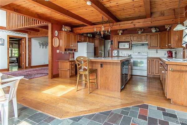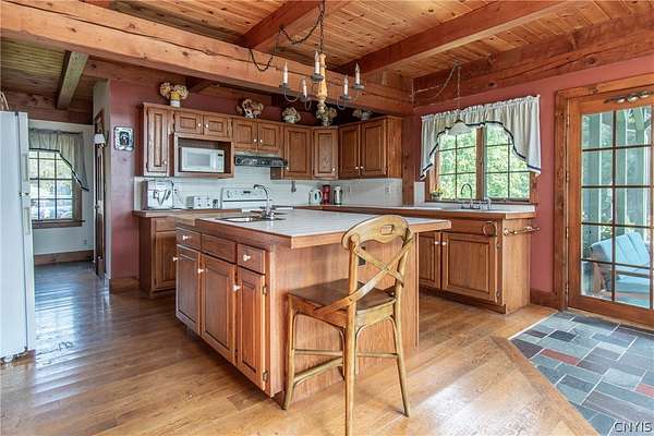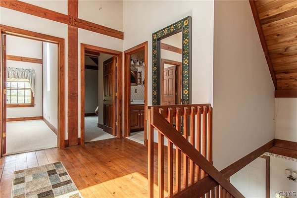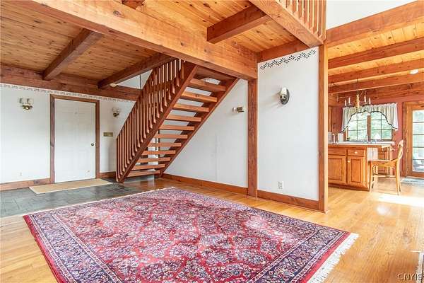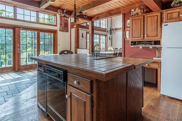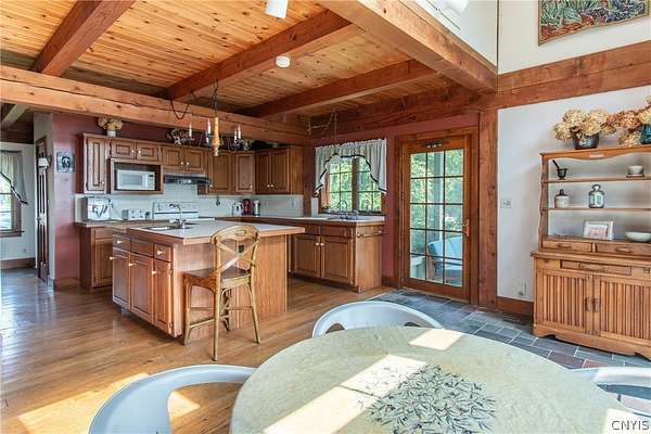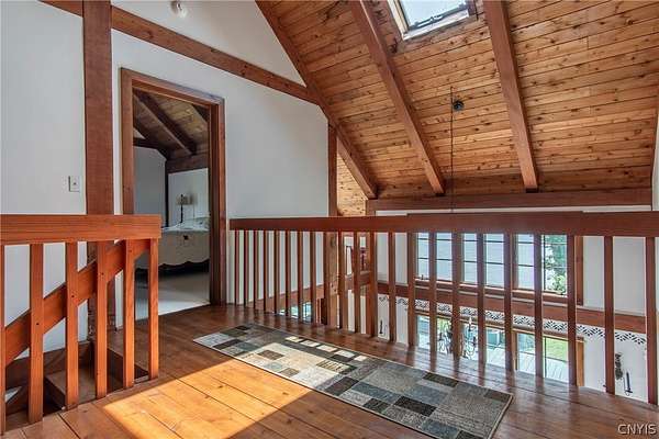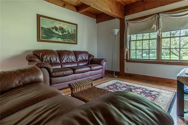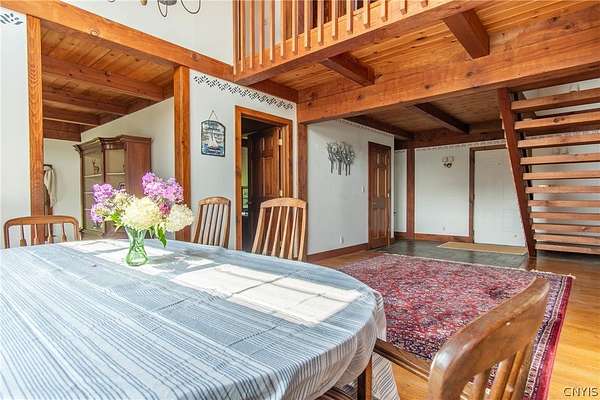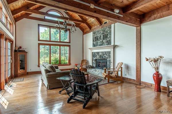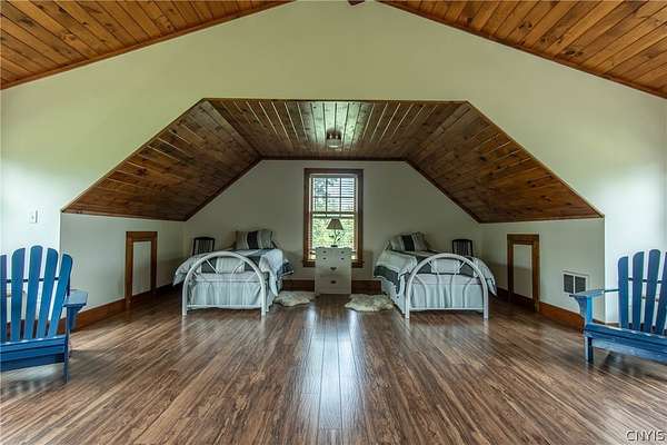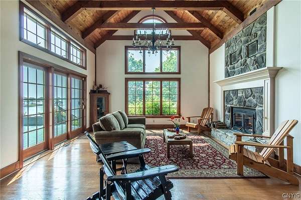 Come tour this once-in-a-lifetime opportunity to own this genuine post and beam Lake Ontario beauty! This over 3,000 square foot gem boasts a total of five bedrooms and four bathrooms which includes a very spacious bunk room above the garage! Stunning views from almost every window in the house, wood floors, beautiful stone fireplace, large open kitchen with eating area and Island plus formal dining room! First floor bedroom and bath, Central vac, attached two-car garage, beautiful Screened in side porch overlooking the bay and so much more! Huge front deck and steps leading down to the shoreline area with another large deck. Over 300 ft of shoreline that is mostly sand in the water and stunning views all tucked away on almost 8 acres of land with solar panels paying your electric bill! Gorgeous fruit orchard throughout the property and so much privacy! This is truly a dream home and a rarity to find! Call today for your private viewing and don't miss out on this beauty!