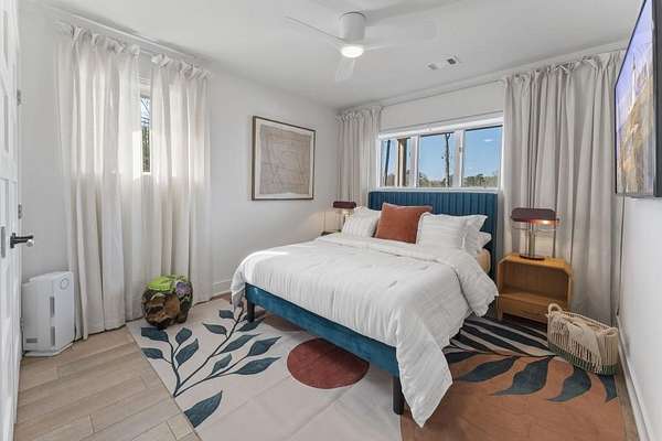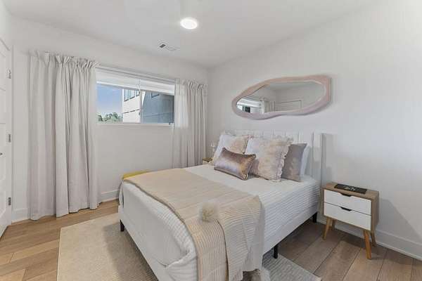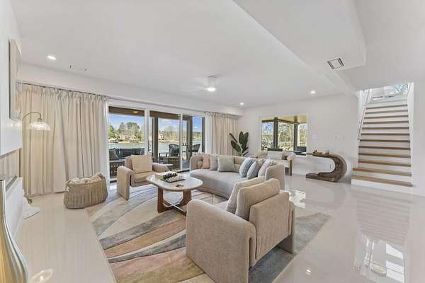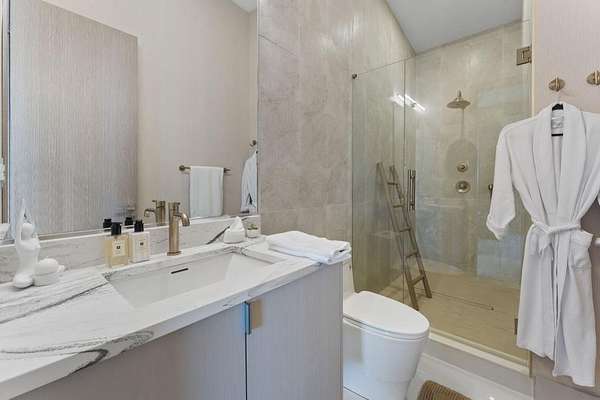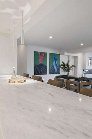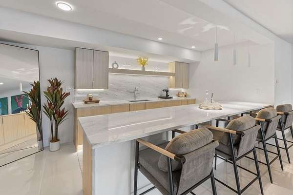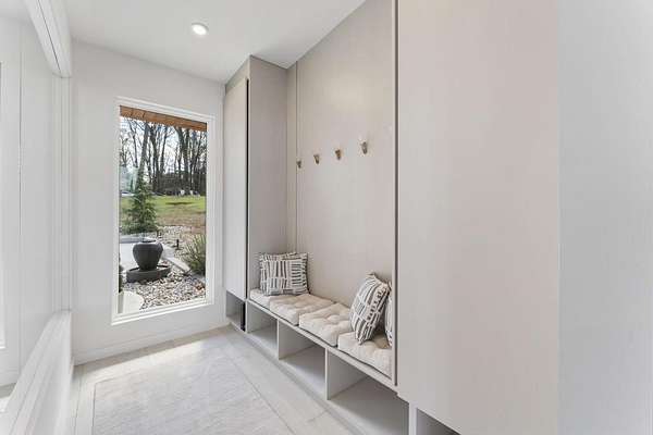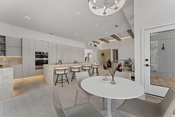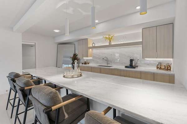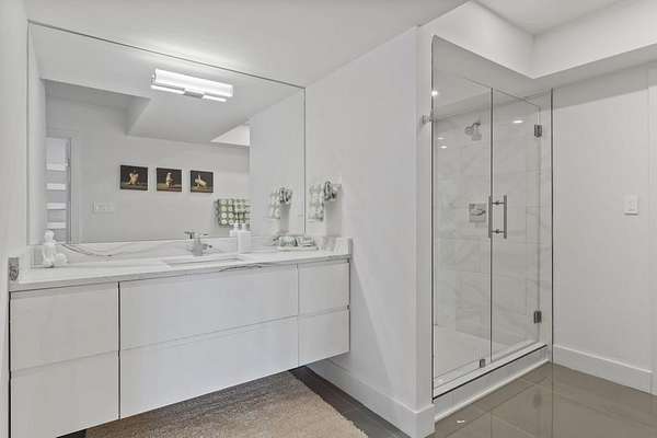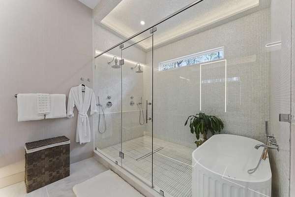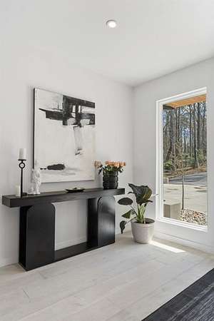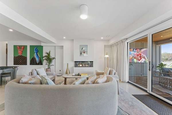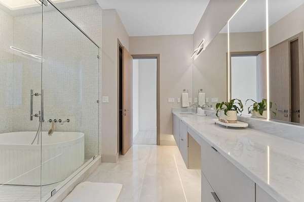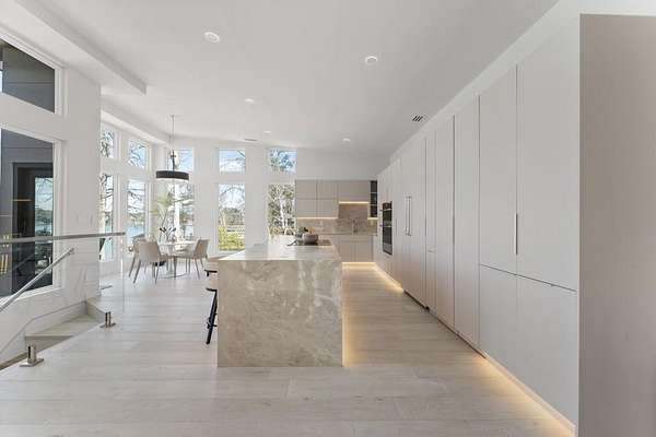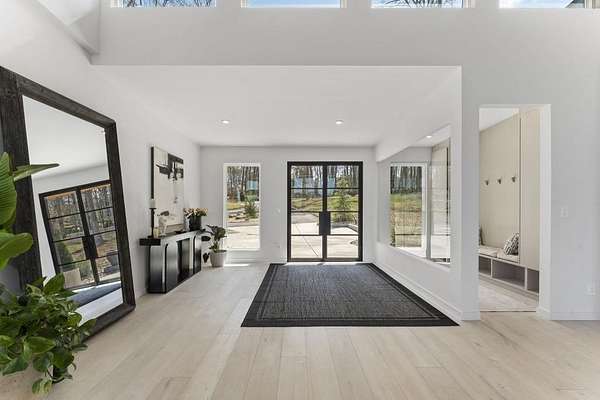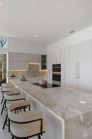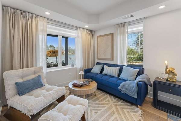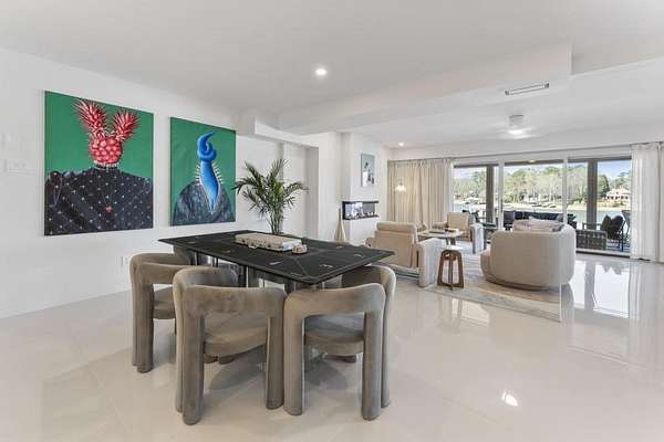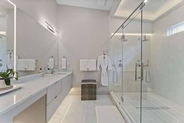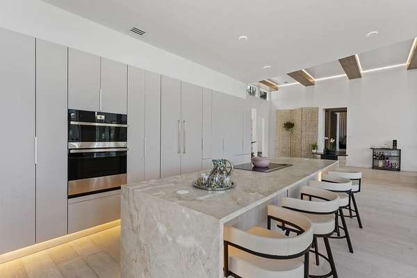 Mornings begin with still water and soft light stretching across 600 acres of Lake Spivey Georgia's largest private lake. Tucked along 175 feet of prime shoreline on 1.52 acres, this architectural modern estate was designed to frame the view, the light, and the experience of true waterfront living. Offering 5 bedrooms, 4 full baths, and 1 half bath with the primary suite on the main this residence balances contemporary architecture, natural textures, and resort-style amenities. Located just 15 minutes from Hartsfield-Jackson International Airport and under 30 minutes to Downtown Atlanta and Woodward Academy, it delivers the rare combination of secluded lakefront serenity and everyday accessibility. A gated drive winds toward the residence, revealing Brazilian wood ceilings and a private courtyard that introduce the home's refined craftsmanship. Inside, soaring 20-foot ceilings, sleek high-gloss stretch ceilings illuminated with integrated LED lighting, and custom 18-inch wooden beams create dramatic scale. A 15-foot Venetian plaster fireplace wrapped in marble anchors the great room, while a striking 10-foot imported Banyan tree root from Indonesia adds an organic sculptural focal point. The chef's kitchen blends artistry and function with matte aqua-guard cabinetry imported from Spain, double ovens, induction cooktop, and an impressive 11-foot quartzite waterfall island with matching backsplash. A hidden walk-in pantry with secondary washer and dryer enhances everyday convenience. The main-level primary suite offers privacy and elegance, featuring custom Italian wallpaper, 8-foot European doors, and access to a private glass-enclosed balcony overlooking the lake. The spa-inspired bath is a retreat of its own with dual floating vanities, marble counters, freestanding ribbed soaking tub, and a floor-to-ceiling Mother of Pearl mosaic shower illuminated by LED tray lighting. A sleek glass staircase leads to the fully finished lower level designed for both entertaining and extended stays. Here you'll find a marble-topped bar, modern glass fireplace, plush theater room wired for screenings, multiple bedrooms including a poolside en-suite with private den, shared porcelain-tiled bath, second laundry room, and seamless access to the outdoor living spaces. Outside, a newly installed 32-foot saltwater pool and spa overlook the lake, complemented by a brand-new boathouse with two slips and a rare grandfathered-in private boat ramp for direct access to the water. An exceptional modern offering on Lake Spivey where design, water, and lifestyle meet.