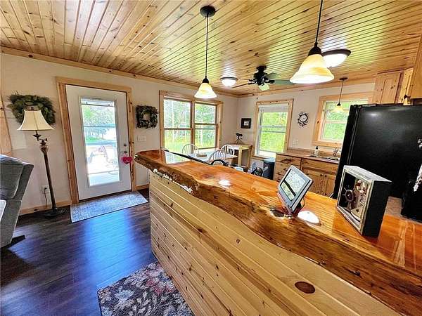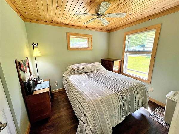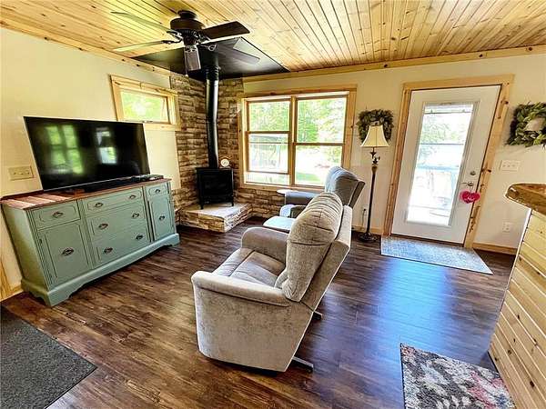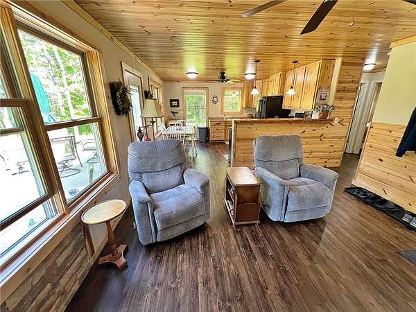Year-round, turnkey home ideally situated along a dead-end paved road on quiet, Twin Lake. Boasting over 200ft of beautiful hard bottom level shoreline and close to 2 acres of land & lots of privacy-you won't find a more peaceful setting than this! The 2 bed/1 bath is detailed in gorgeous natural woodwork and is well thought out for max efficiency and usefulness. There is Fiber optic WiFi, in-floor heat, Kinetico water system, gas tankless water heater & 30yr shingles. There is a gas burning fireplace in the main cabin and the garage dual heat furnace includes a wood burner.