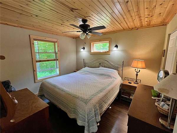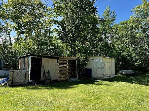Lots of storage; the 26x30x10 insulated/heated detached garage, with it's 8 x 16 insulated door and 2x6 R60 insulated wall, makes for the perfect work shop, or use it as the current owners do, a true extension to their home where family and friends can gather for fun when it's raining or not out on the lake. This space would also make a great bunk-house or additional living space! The 26x48 pole building has been used for dry storing in the winter months and a workshop in the summertime. There are also 3 storage sheds with one being conveniently located down by the lake. Enjoy the lakeside fire pit while listening to the loons at night. Surrounded by mature hardwoods, this Up North oasis has lots of well customized living spaces designed with relaxation and nature in mind. Move-in ready with all the fun extras & virtually maintenance-free!