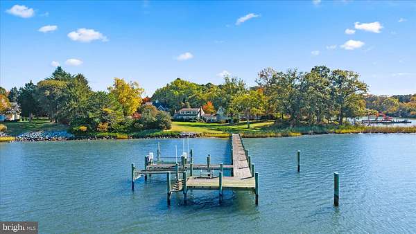 Swan Point is an exquisite waterfront estate set on approximately 4.5 acres, offering sweeping westerly views across the Tred Avon River. A gated, paved driveway with cobblestone curbs welcomes you to this private retreat. This stately Colonial features 4 bedrooms, 4 full baths, and 3 half baths, thoughtfully designed for both intimate living and grand entertaining. The formal living room, complete with a wood-burning fireplace, opens to a charming three-season porch. A separate formal dining room provides an elegant setting for gatherings. The gourmet kitchen includes a breakfast area and adjoining den with a wood-burning fireplace and 600-year-old heart pine floors that are radiant-heated. A spacious sunroom extends from the kitchen and flows seamlessly onto a brick patio with a built-in grill and is just steps from an inground, heated pool with spa and brick surround. A separate laundry room with powder room, and an attached two-car garage finish off the main level. The partially finished basement offers additional living space with a wood-burning fireplace, full kitchen, and powder room. A private staircase leads to the primary suite, located in its own secluded wing, featuring two walk-in cedar closets and a luxurious bath with soaking tub and separate shower. The main staircase leads to additional bedrooms, including a second primary suite, a third bedroom with hall bath, and a fourth bedroom with a sitting room and en suite bath. Outdoors, a large dock with seating area offers approximately 4' MLW, water, electric, and two boat lifts. The partially rip-rapped shoreline enhances both beauty and stability. The spacious carriage house includes room for collector cars, an office with gas fireplace and wet bar, a conference room or flex space, and a powder room. A three-car detached garage offers additional storage with a guest apartment above. Equestrian enthusiasts will appreciate the barn with four stalls, office, tack room, and abundant loft storage, along with three paddocks for horses. A workshop with wood stove and powder room provides the perfect space for woodworking or creative pursuits. A second entrance offers convenient access for horse trailers or boats. Swan Point combines timeless elegance, comfort, and versatility-all set against one of the Eastern Shore's most captivating waterfront backdrops. Easton, Maryland, known as the New Hamptons of the Chesapeake Bay by Forbes Magazine, is conveniently located 1.5 hours from D.C. and Baltimore, and 2 hours from Philadelphia. Just minutes from fine dining, shopping, healthcare, theatres, galleries, museums, golf courses, a country club, a yacht club, and a jet airport.