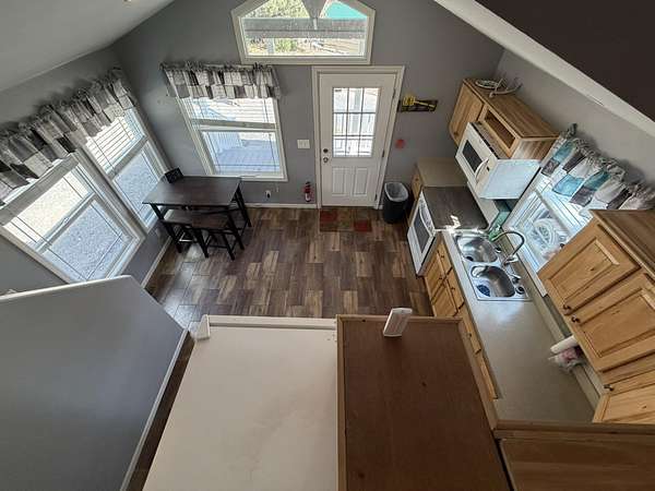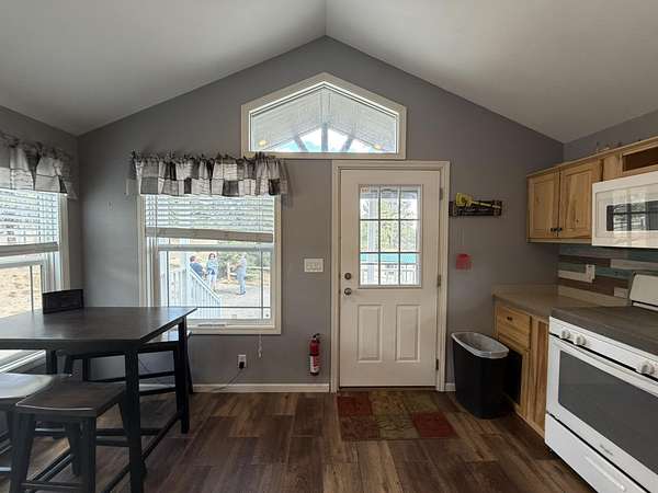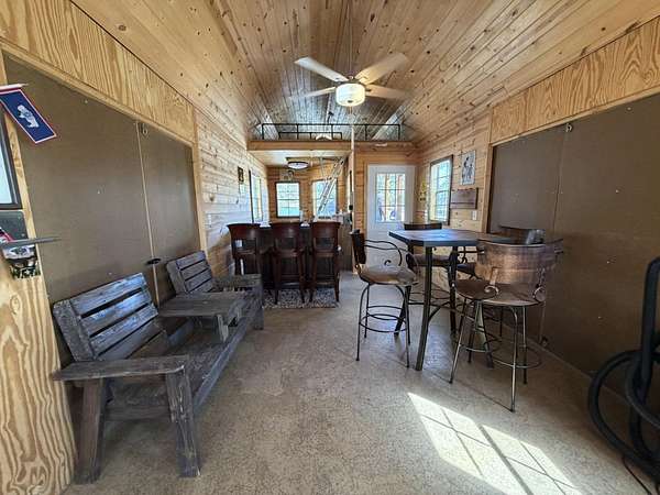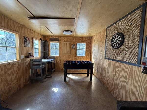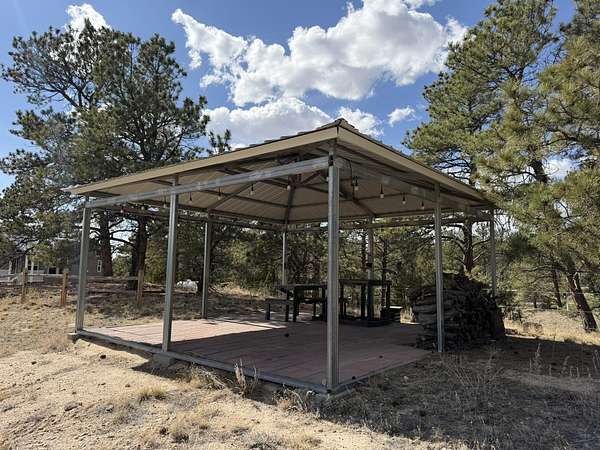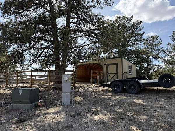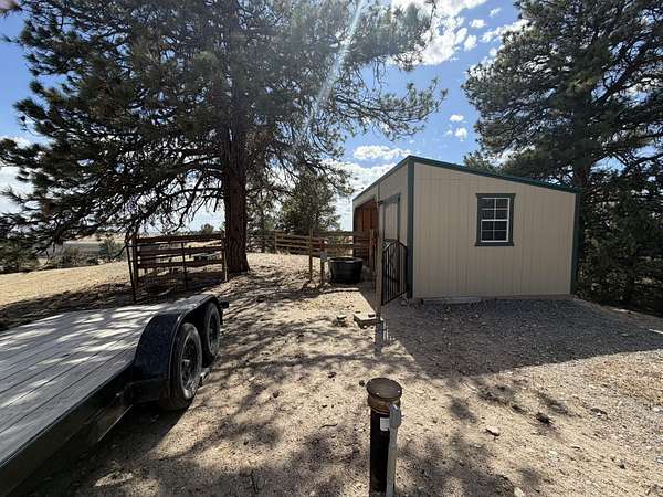 Discover this exceptional 80-acre fully fenced property located in Fort Laramie, offering a perfect blend of open meadows, mature pines, and rugged terrain—ideal for those seeking privacy, recreation, and natural beauty. This one-of-a-kind property features an immaculate tiny home complemented by multiple well-maintained outbuildings. Enjoy a versatile entertainment building with a unique setup—half saloon-style game room and half dedicated storage, each with its own entrance. Both the saloon and the tiny home offer additional sleeping accommodations in their loft areas, and four RV hookups with 110/30-amp service, offering flexibility for guests or extended stays. Outdoor living is elevated with a thoughtfully designed party patio complete with ambient lighting and a fire pit, perfect for gatherings under the stars. Additional features include a second fire pit near the saloon/bunkhouse, a horseshoe pit for added entertainment, a separate storage building suitable for a garage or ATV storage, and a fully functional livestock pen with shelter. The property also boasts a charming apple orchard, fully enclosed with a 6-foot electric fence to protect it from the abundant local wildlife that frequently visits the land and a drip line watering system for added convenience. Conveniently situated near notable destinations such as Fort Laramie National Historic Site, Guernsey State Park, Gray Rocks Reservoir and the North Platte River, the property provides easy access to rich history, fishing, boating, hiking, and outdoor adventure. A rare opportunity to own a truly distinctive property with endless possibilities.Call Julianne @ 307-575-9024
