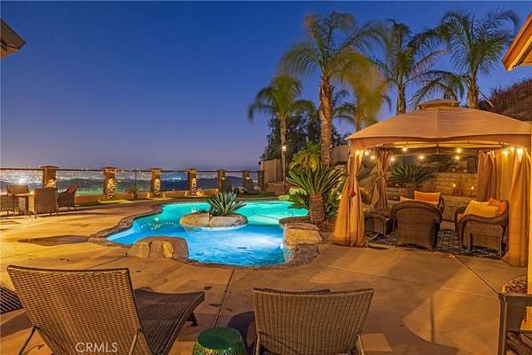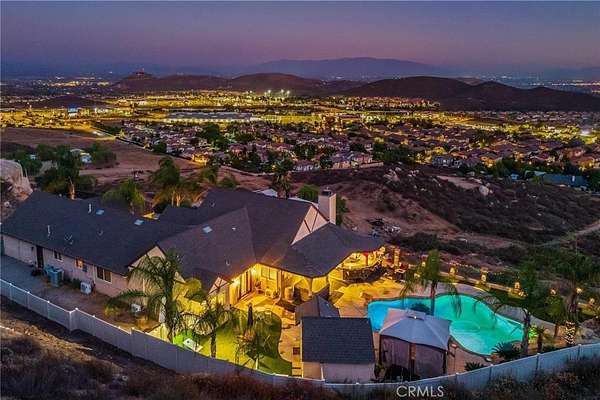 Set amid the rolling hills of Murrieta, this ultra private 5 acre estate stands as one of the region's most distinctive and captivating offerings. Offering sweeping panoramic views in every direction, the property combines exceptional privacy with easy proximity to upscale shopping, dining, and freeway access. Designed for effortless luxury and unforgettable gatherings, the residence features a resort inspired pool with slide, generous outdoor entertaining areas, and integrated solar power for exceptional energy efficiency. Every element has been thoughtfully crafted to elevate comfort, privacy, and style. With its remarkable setting, scale, and infrastructure, the estate invites a range of possibilities for the next owner's enjoyment, whether as a serene personal residence or a venue for memorable occasions. Opportunities of this caliber, where lifestyle, craftsmanship, and natural beauty converge, are exceedingly rare.