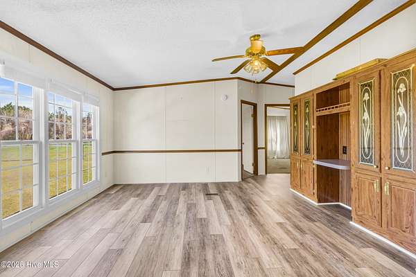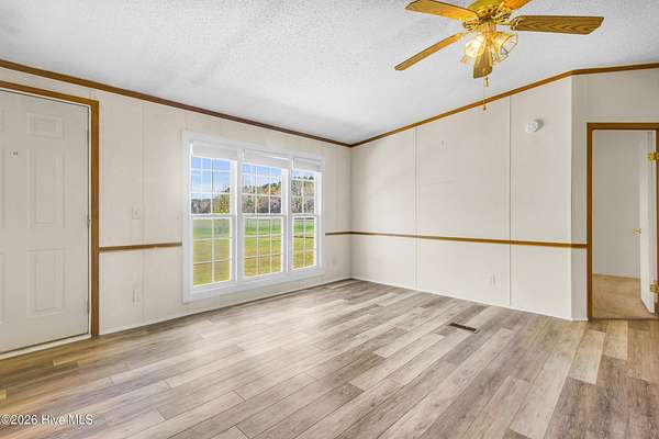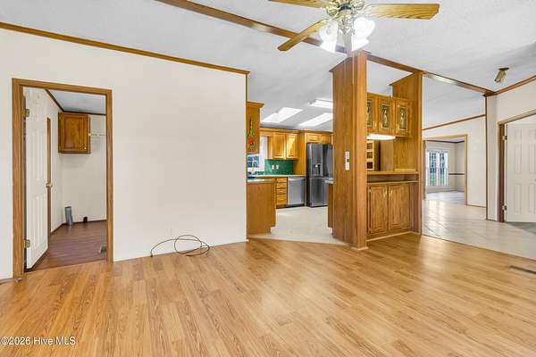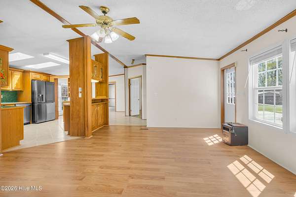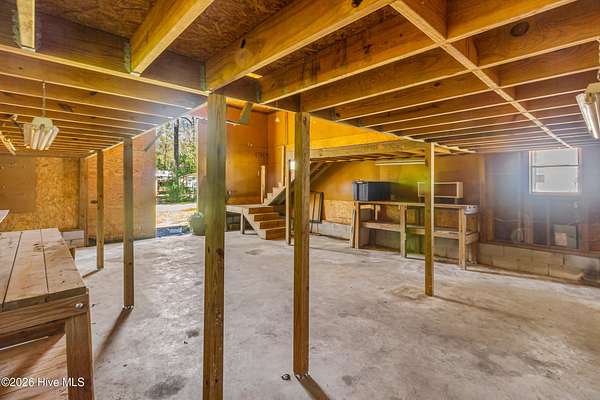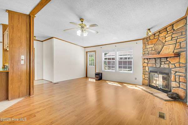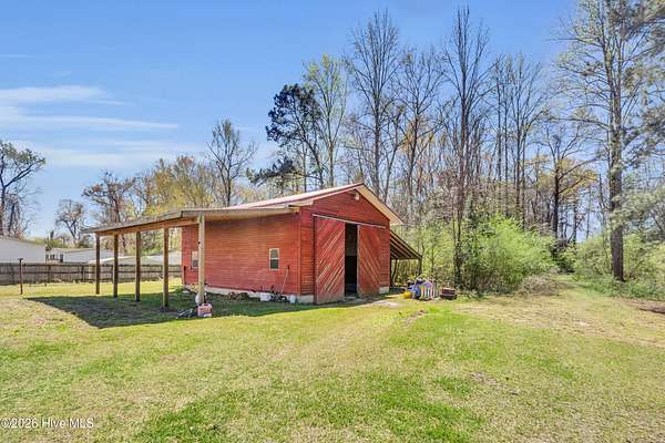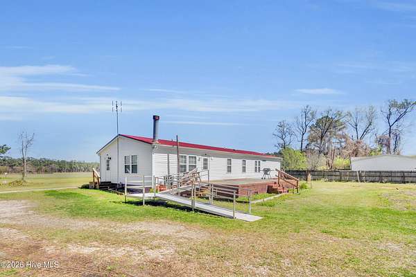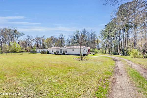 Welcome to this beautifully situated home on a spacious 1.7-acre double lot, offering the perfect blend of comfort, functionality, and peaceful surroundings. Upon entering, you're welcomed by a bright, open floor plan featuring a welcoming living room and dining area, both filled with natural light and designed for both everyday living and effortless entertaining. A separate den with a striking stone fireplace provides an additional cozy gathering space, ideal for relaxing evenings. The kitchen is light and inviting, complete with a breakfast bar and skylights that enhance the airy feel of the home. The primary suite offers a private retreat with an ensuite bath featuring dual sinks and a generously sized shower. Two additional bedrooms and a second full bath provide flexible space for a variety of needs. A dedicated laundry room adds everyday convenience. Outdoor living shines with a large back deck overlooking the expansive property, perfect for enjoying the quiet setting. A barn with ample storage and stair access adds versatility for hobbies, equipment, or workspace needs. Enjoy the charm of country-style living while remaining just minutes from downtown New Bern, where you'll find waterfront dining, boutique shopping, historic sites, marinas, parks, and a vibrant arts scene. Convenient access to medical facilities, grocery stores, and everyday essentials completes the lifestyle this property offers.