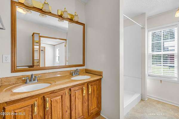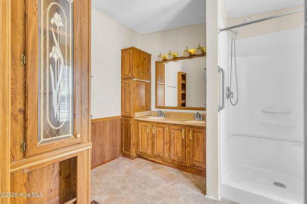 - Blinds/Shades, Entrance Foyer, Gas Log, Master Downstairs, Walk-In Shower