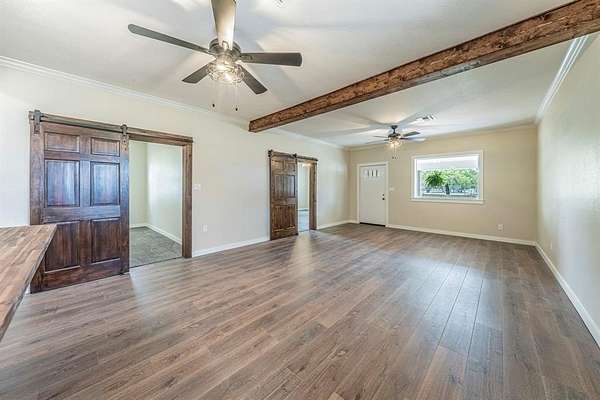 Beautiful farm cottage located across the street from historic Fort Belknap! This completely updated home sits on2.67 acres, offering quiet surroundings and a bright open feel throughout. NEW UPDATES INCLUDE: exterior siding, HVAC, flooring, windows, tankless propane water heater, plumbing, plumbing fixtures, dishwasher, ceiling fans, light fixtures, custom kitchen island with farm sink, butcher block countertops, updated wiring and new microwave which stays with the house. Relax in your new primary Wet Room Bath featuring a beautiful soaker tub. Enjoy cooking in your new kitchen with butcher block countertops and farm sink. Relax sitting on the front porch watching wildlife with a view of Fort Belknap and the mature producing pecan trees. Enjoy your projects in the workshop which has electrical wiring and 3 additional outbuildings for storage. The 2.67 acres offers lots of room for family fun, animals or future building projects and seeing wildlife. It has an extra large storm cellar to escape the Texas weather. This property is perfect for someone wanting to raise a family, downsize, or have a vacation home or rental. You could own a piece of Texas history since this property before being sold was part of the original Fort Belknap where the Goodnight Loving Trail all began. Close to Brazos River, Graham Lake, Possum Kingdom Lake, 10 miles from Graham which boasts the Largest Downtown Square in America and shopping, 1 hour to Wichita Falls and Weatherford. A move in property updated correctly. Peaceful, quiet and beautiful. You need to check this out!