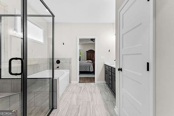 Double Vanity, High Ceilings, Master On Main Level, Separate Shower, Split Bedroom Plan, Tile Bath, Vaulted Ceiling(s), Walk-In Closet(s)