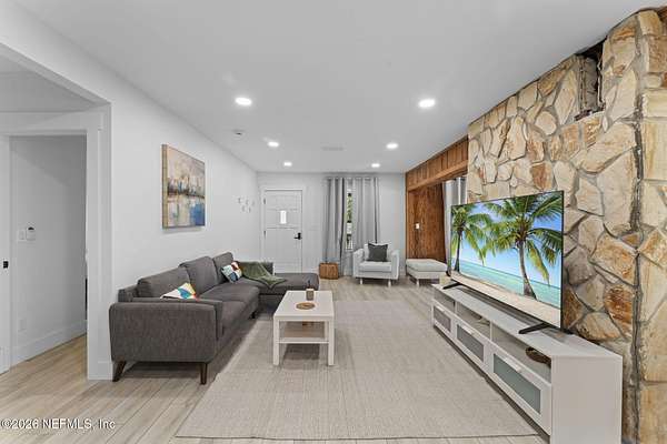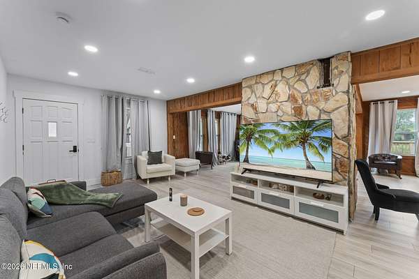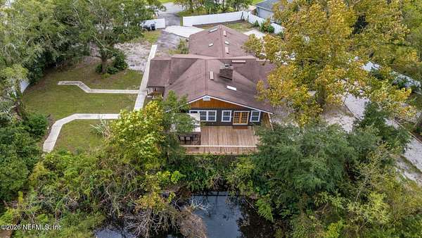 City Convenience Meets Country Serenity! Escape the hustle and bustle without ever leaving town! This stunning 3-bedroom, 3-bathroom gem has been completely remodeled from top to bottom, offering the perfect blend of modern luxury and rustic charm. Situated on a sprawling 1.86-acre lot, this property features a picturesque natural pond and a massive wrap-around balcony that invites you to soak in the views. Inside, the open-concept floor plan shines with a chef-inspired kitchen flowing seamlessly into the living and dining areas. Retreat to the sun-drenched family room for tranquil pond views or step out onto the expansive deck for ultimate outdoor entertaining. With NO HOA and NO CDD, the possibilities are endless. This unique ''country in the city'' estate is a rare find!