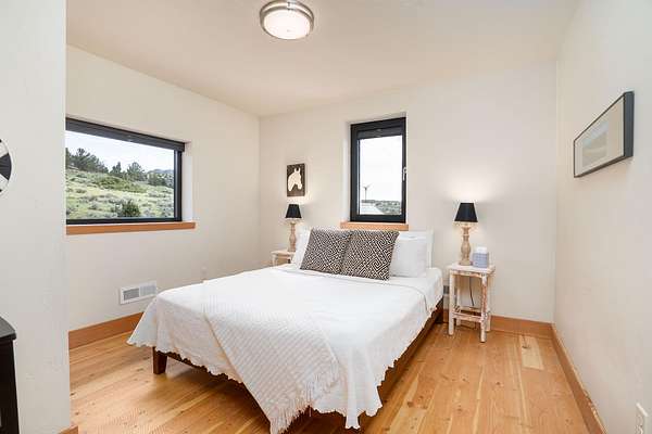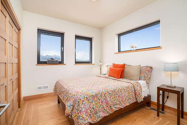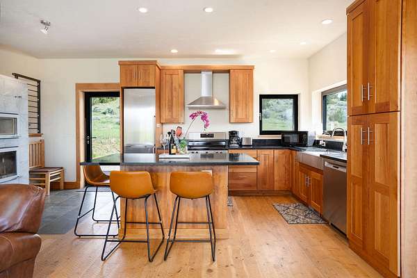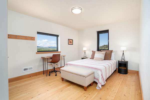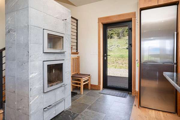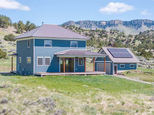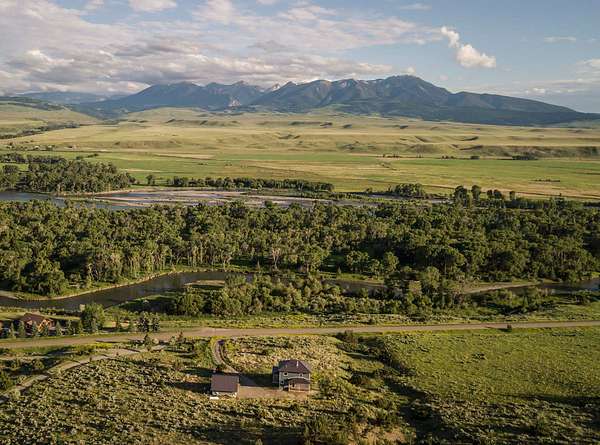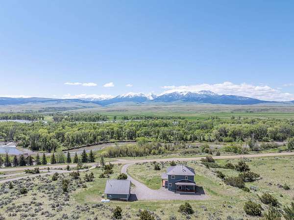 Peaceful and private, yet just 10+- minutes from the artsy river town of Livingston, Montana, Nordic Escape by the Yellowstone sits regally on 4.2+- deeded acres along a ridge, providing incredible views of the Yellowstone River, Mission Creek, Sheep Mountain, and the Absaroka, Gallatin, and Beartooth Mountain Ranges. The 1,536+- square foot, four-bedroom, two-bathroom custom home boasts an open concept, energy efficiency, and extreme attention to detail around every corner. Just a half mile down the road, access the Yellowstone River for world-class trout fishing at Sheep Mountain FWP, where Lewis and Clark camped in 1806. The property also enjoys shared ownership and exclusive access to a private 89+- acre island just south on the Yellowstone River. Built in 2016 and featured on the Discovery Channel's Building Off the Grid, the home includes many unique features. With circle-sawn fir flooring throughout, large Glo high-efficiency tilt and turn European windows bring the natural world inside. The home's centerpiece is its Finnish soapstone Tulikivi 'Norva' high-efficiency thermal mass/radiant heat wood fireplace with a bake oven. The open kitchen includes Brazilian soapstone countertops, a farmhouse sink, stainless steel appliances, and cherry cabinets. Other unique home details include slate and soapstone tiles and custom steel railings. A redwood-covered deck wraps around three sides of the home, providing the perfect spot to watch the sunrise with a cup of coffee or the animals come out as the sun sets and the alpenglow takes over. A detached two-car garage with a storage loft and a solar array provides plenty of room for recreational toys. The home is also net-metered to the grid.