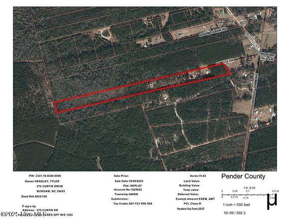 Private 19.43-acre retreat with custom home, workshop & wildlife: only 30 miles to Wilmington and 6 miles to the public boat ramp! For those who crave seclusion, there's no better way to achieve it than with this expansive property. Welcome to 275 Curtis Dr, a rare haven in Burgaw that offers both unmatched tranquility and quick access to Wilmington's vibrant dining, historic riverfront, shopping, and beaches. Here, the great outdoors is truly yours. Watch deer grazing, foxes slipping through the pines, hawks soaring, and rabbits and turtles making their appearances. Approximately 7 acres have been cleared and trails have been cut throughout for exploration or recreation. At the heart of the property stands a custom-built, 2,278 sq. ft. home with thoughtful features throughout: crown molding, custom cabinetry, and walk-in attic storage. The primary suite is on the main level. A bright sunroom opens to a back deck overlooking your private woods. The additional shed offers extra space for hobbies or storage. The open kitchen and dining room are perfect for gatherings. Additional highlights include a 40x50 wired workshop with compressor, a two-car attached garage, and a secondary efficiency unit above the garage. This guest apartment features a tiled mini-kitchen, shower, and half bath (approx. 319 sq. ft. not included in heated square footage). This offering also includes 225 Curtis Dr, where a previous manufactured home once stood. While the home has been removed, there may be an old septic in place, providing possible value for future use. This property is a jewel of Pender county, the kind that rarely comes to market. With endless possibilities for recreation, hobby farming, or simply soaking in the serene natural surroundings, this is a one-of-a-kind opportunity that deserves a personal tour.