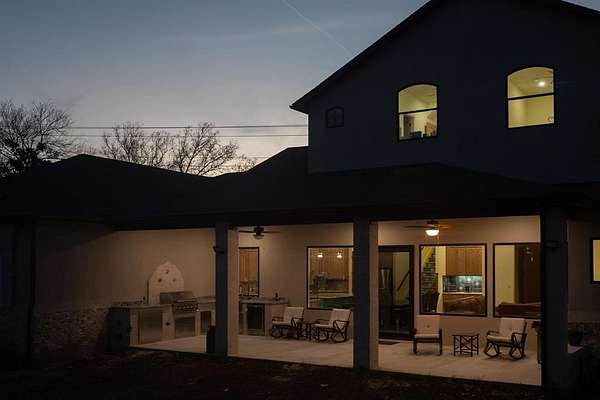 The heart of this home is undoubtedly the dream kitchen, featuring a 48 inch range, custom vent hood, an oversized island perfect for gatherings, and a charming coffee bar. An antique door leads you to the spacious walk-in pantry, that also has space for a second fridge. Entertain effortlessly on the oversized back porch complete with an outdoor kitchen and propane grill, ideal for summer barbecues.