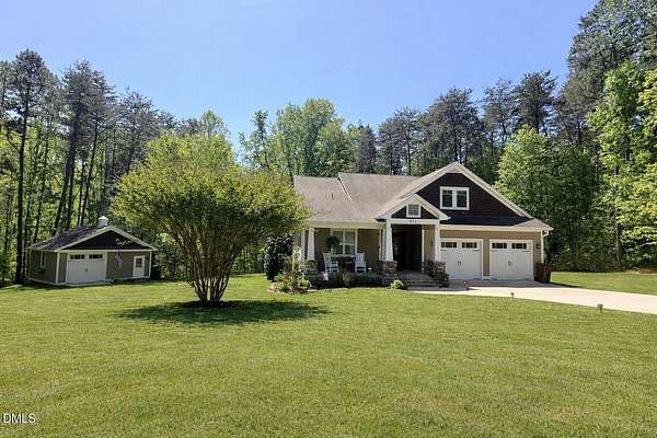 Est $3,226/moCustom built home, in 2010, with 2.16 acres, that has so many added details..built in shelves, screened in porch, built in desk in kitchen, hardwood floors...oh my! 3 bedrooms on the main floor....huge open rooms on upper level! Gorgeous primary bedroom has door to porch, double vanities, walk in shower! 2 car garage! Detached workshop with garage door and half bathroom, and sink. Concrete driveway. Only 8 miles into Roxboro. You can walk to Mayo Lake from this house, and swim, kayak, and canoe!