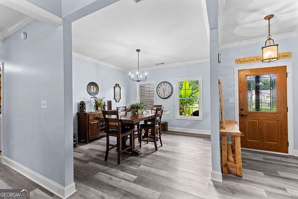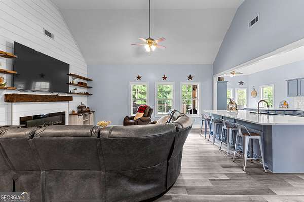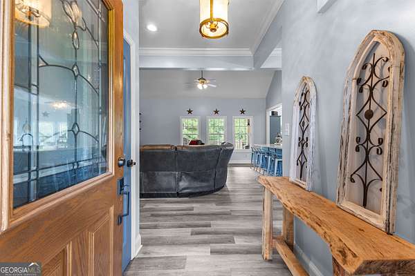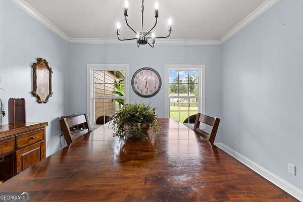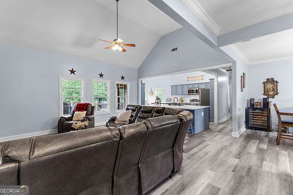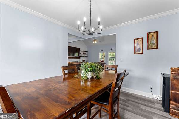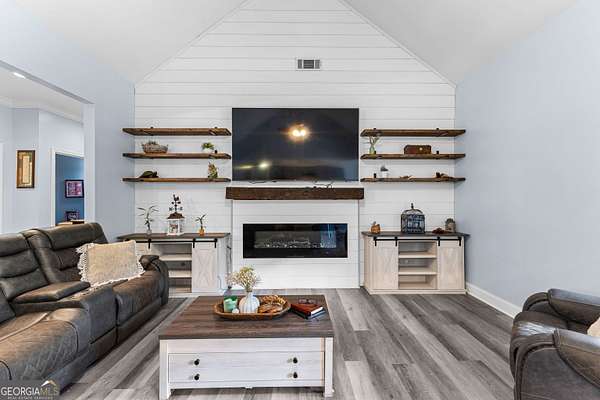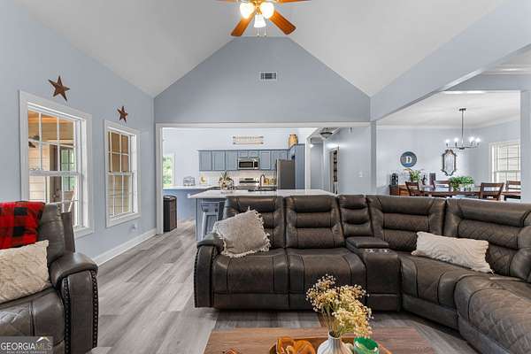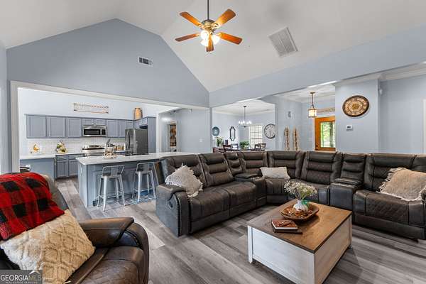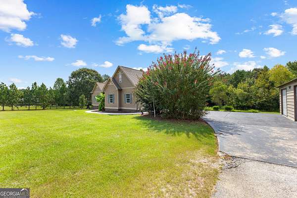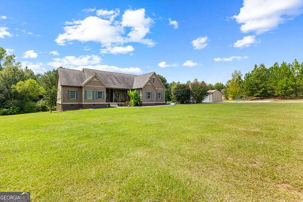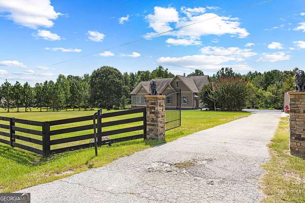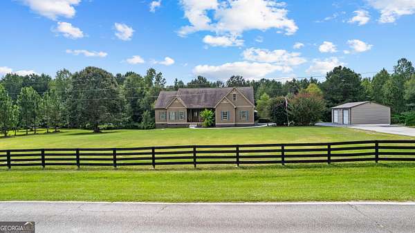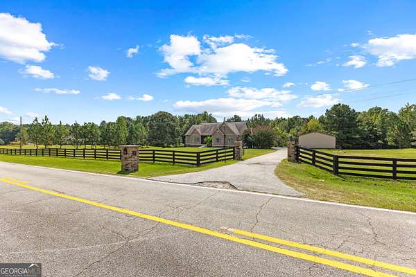 Located in the Brooks area of Spalding County, this home features four bedrooms and two and a half baths, all on the main level. The updated kitchen includes a large island with views into the family room, which offers built-ins and shiplap trim above the fireplace. A vaulted ceiling adds openness to the family room, and a formal dining room provides additional space for gatherings. A bonus room AND a media room make for excellent flex spaces for hobbies or additional living spaces. The oversized deck (with composite decking) at the back of the home extends the living space outdoors. Oversized two-car garage is ideal for workshop, storage, or parking. Don't miss the charming play house at the crawl space entry on the back of the home. A four-board fence with a gate creates a welcoming entrance. The property includes three acres and offers convenient access to downtown Senoia, I-75, and I-85.