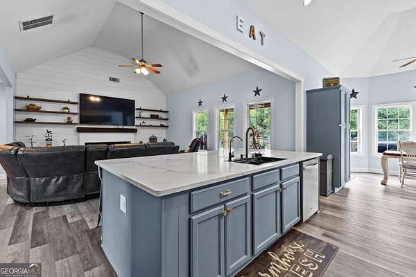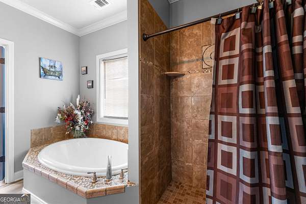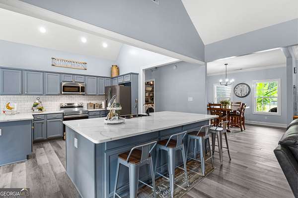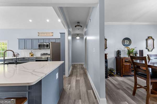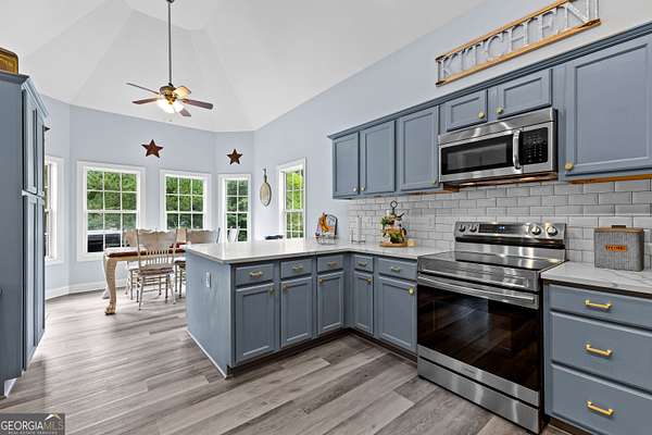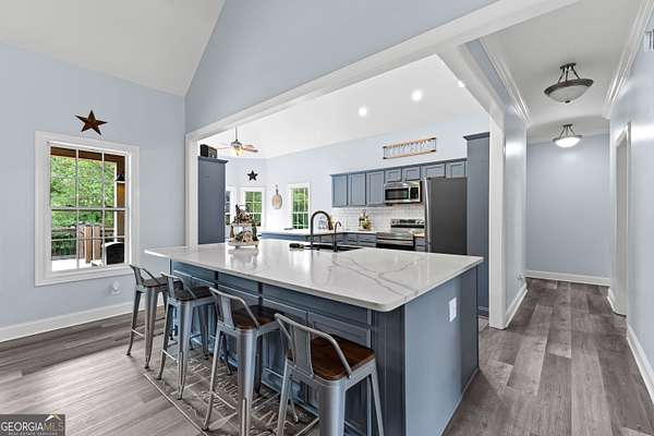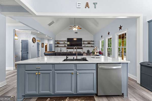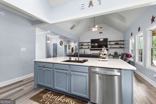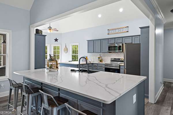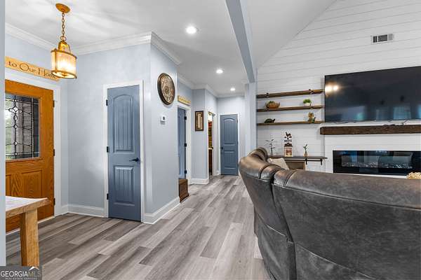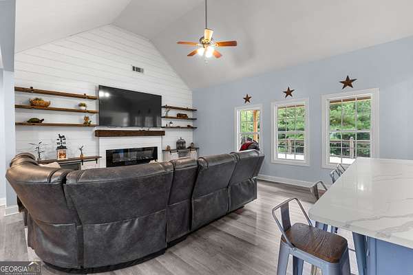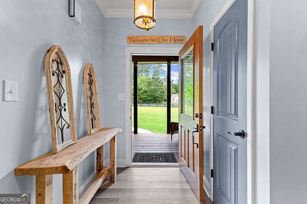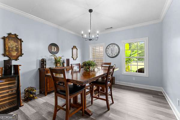 Located in the Brooks area of Spalding County, this home features four bedrooms and two and a half baths, all on the main level. The updated kitchen includes a large island with views into the family room, which offers built-ins and shiplap trim above the fireplace. A vaulted ceiling adds openness to the family room, and a formal dining room provides additional space for gatherings. A bonus room AND a media room make for excellent flex spaces for hobbies or additional living spaces. The oversized deck (with composite decking) at the back of the home extends the living space outdoors. Oversized two-car garage is ideal for workshop, storage, or parking. Don't miss the charming play house at the crawl space entry on the back of the home. A four-board fence with a gate creates a welcoming entrance. The property includes three acres and offers convenient access to downtown Senoia, I-75, and I-85.