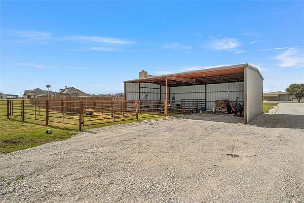The kitchen is well-appointed with quartz countertops, stainless steel appliances, and direct access to the patio, making it perfect for morning coffee or casual dining. The isolated primary suite on the main floor provides a relaxing retreat, featuring a large soaking tub, separate shower with subway tile, dual vanities, and an oversized walk-in closet. Upstairs you’ll find three additional bedrooms along with a versatile bonus room, ideal for a home office, playroom, or flexible living space. Step outside to enjoy a private fenced backyard complete with a 10' x 12' storage shed and greenhouse, offering plenty of room to relax, garden, or entertain. Equestrian and hobby enthusiasts will especially appreciate the newly constructed barn (2025) featuring a full 200-amp electrical panel, LED bay lighting with switch, a new driveway to the barn, and new pipe pens with arena. Located within the highly sought-after West ISD, this well-maintained property offers comfort, space, and country charm in one exceptional home. Schedule your private showing today to experience everything this beautiful property has to offer.